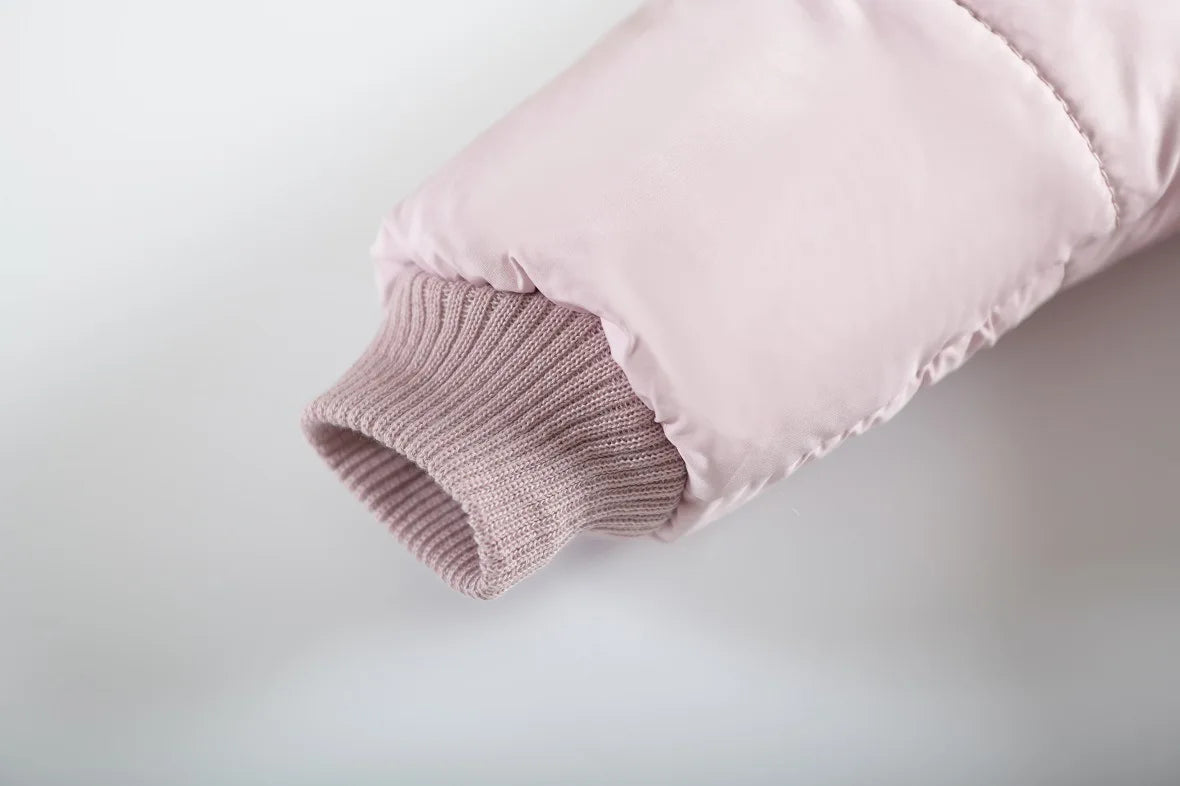 1 2 3 4 Years Baby Girls Jacket Winter New Solid Color Butterfly Decoration Lining Plush Warm Hooded Zipper Down Cotton Outwear