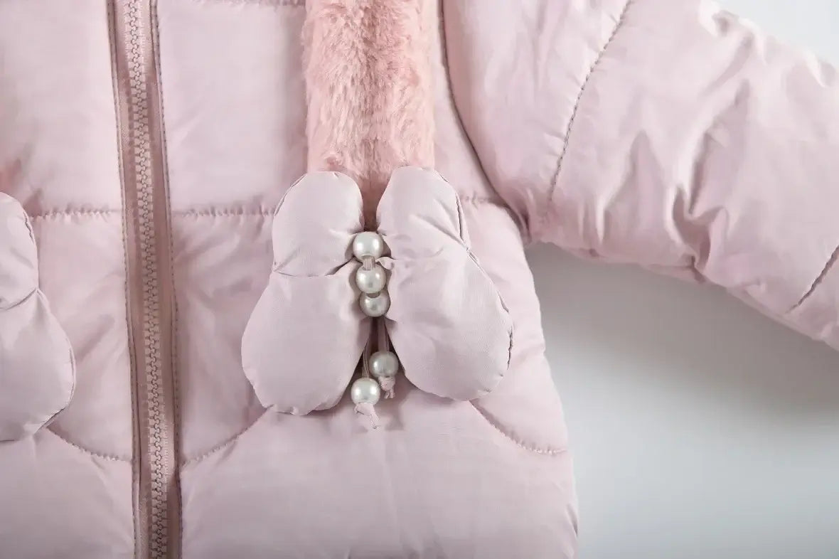 1 2 3 4 Years Baby Girls Jacket Winter New Solid Color Butterfly Decoration Lining Plush Warm Hooded Zipper Down Cotton Outwear