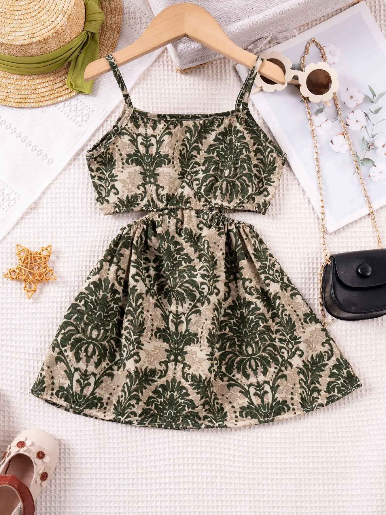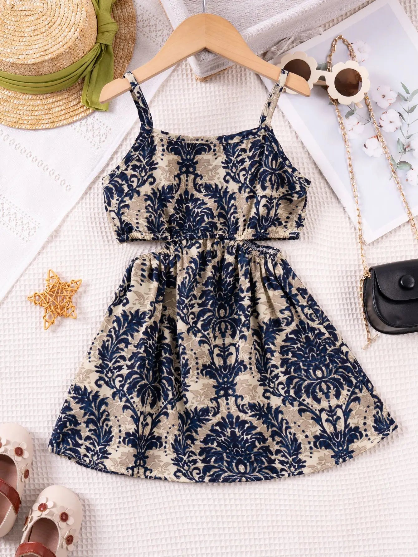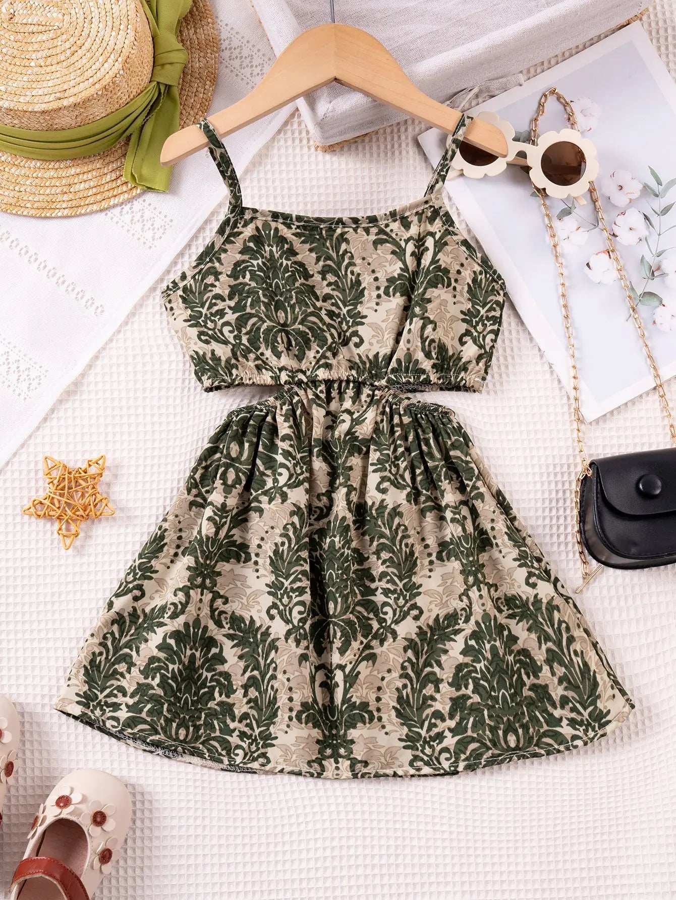 1 - 7 Y Baby Girls' Sling Cut - Out Vintage Floral Print Dress - Stylish & Breathable Summer Outfit for Kids Girls Dress