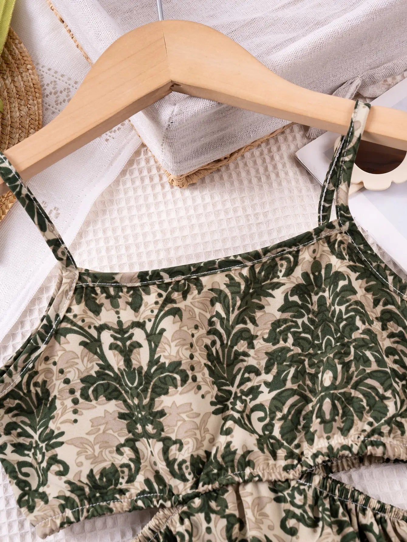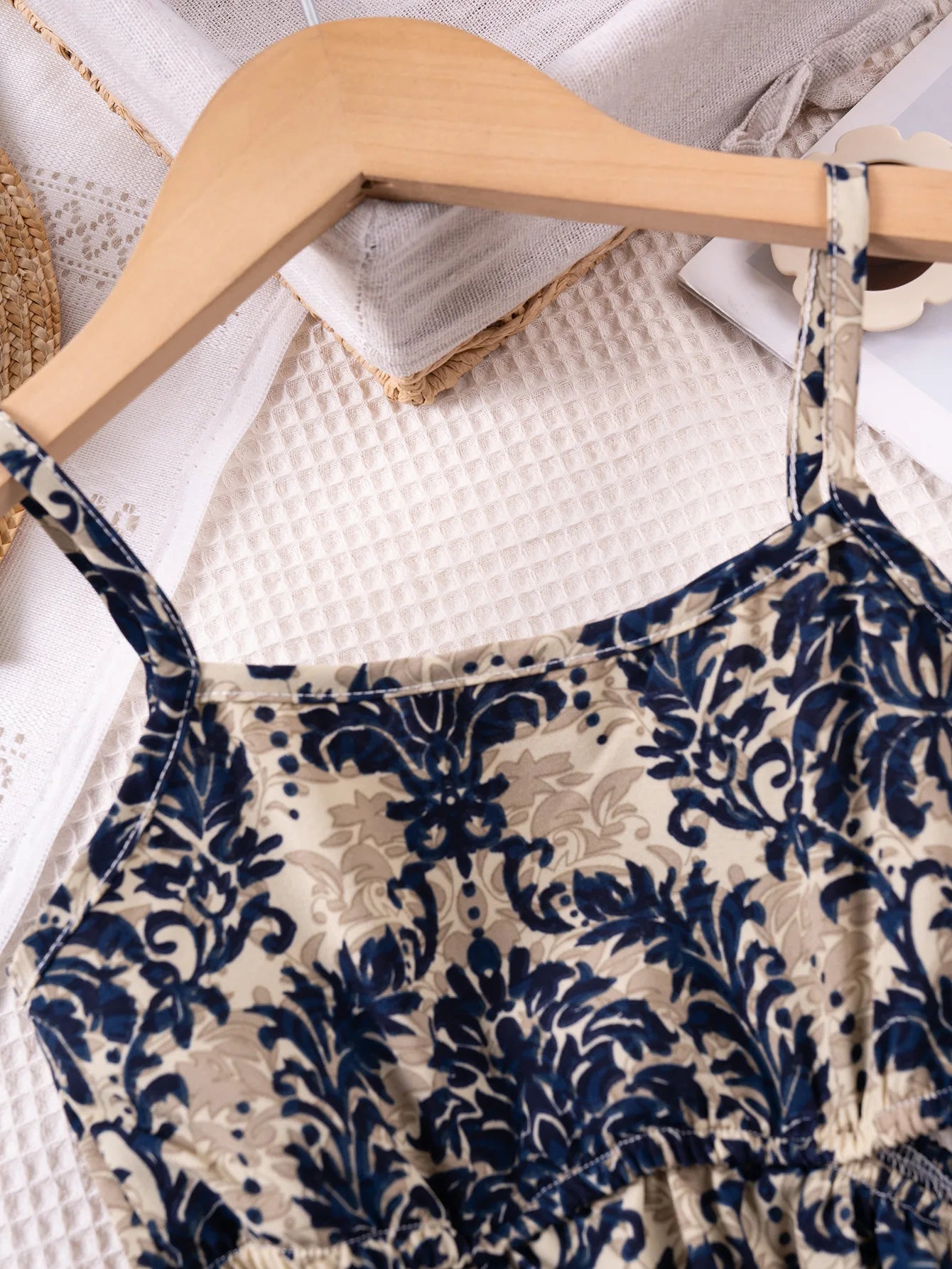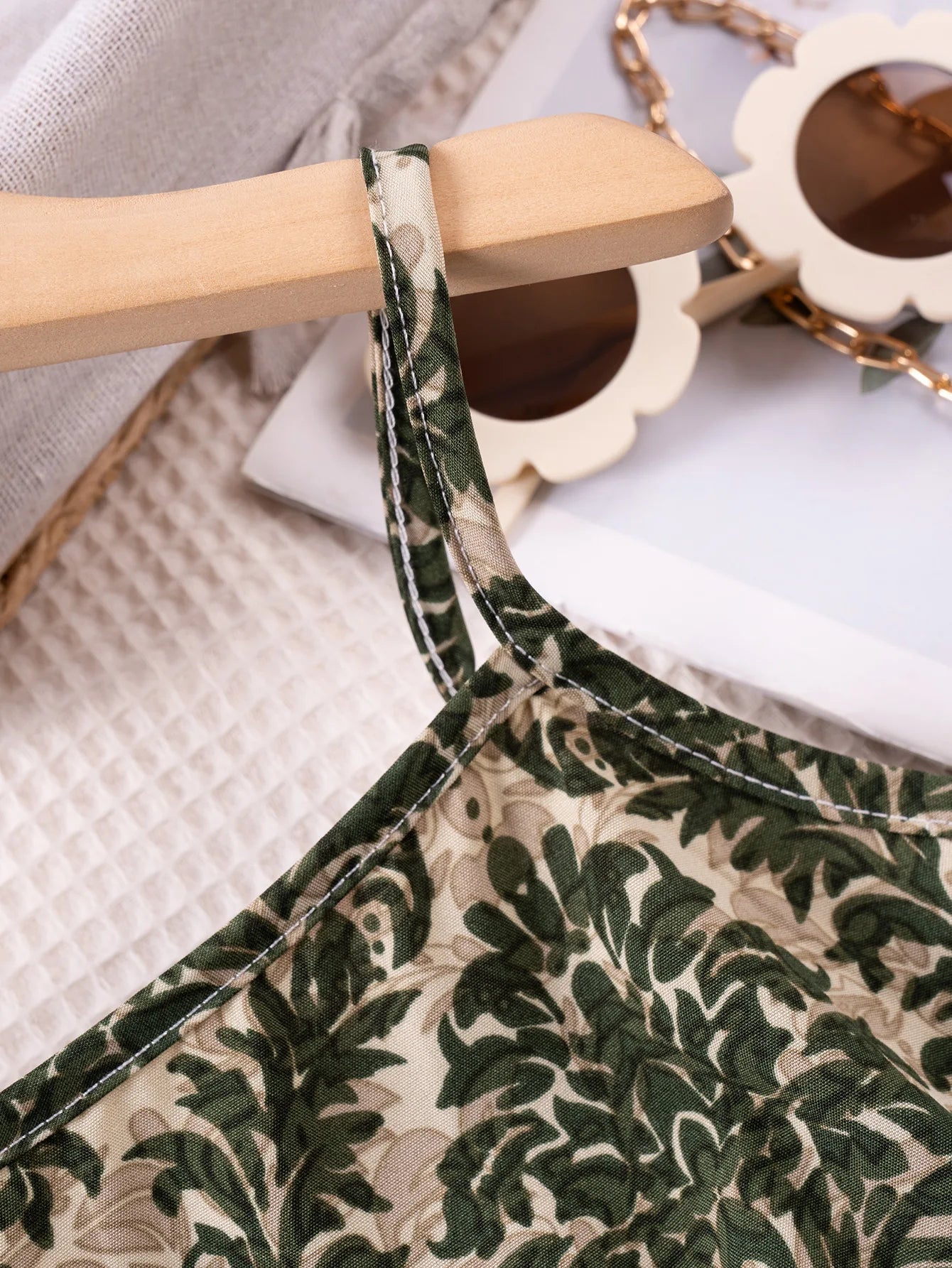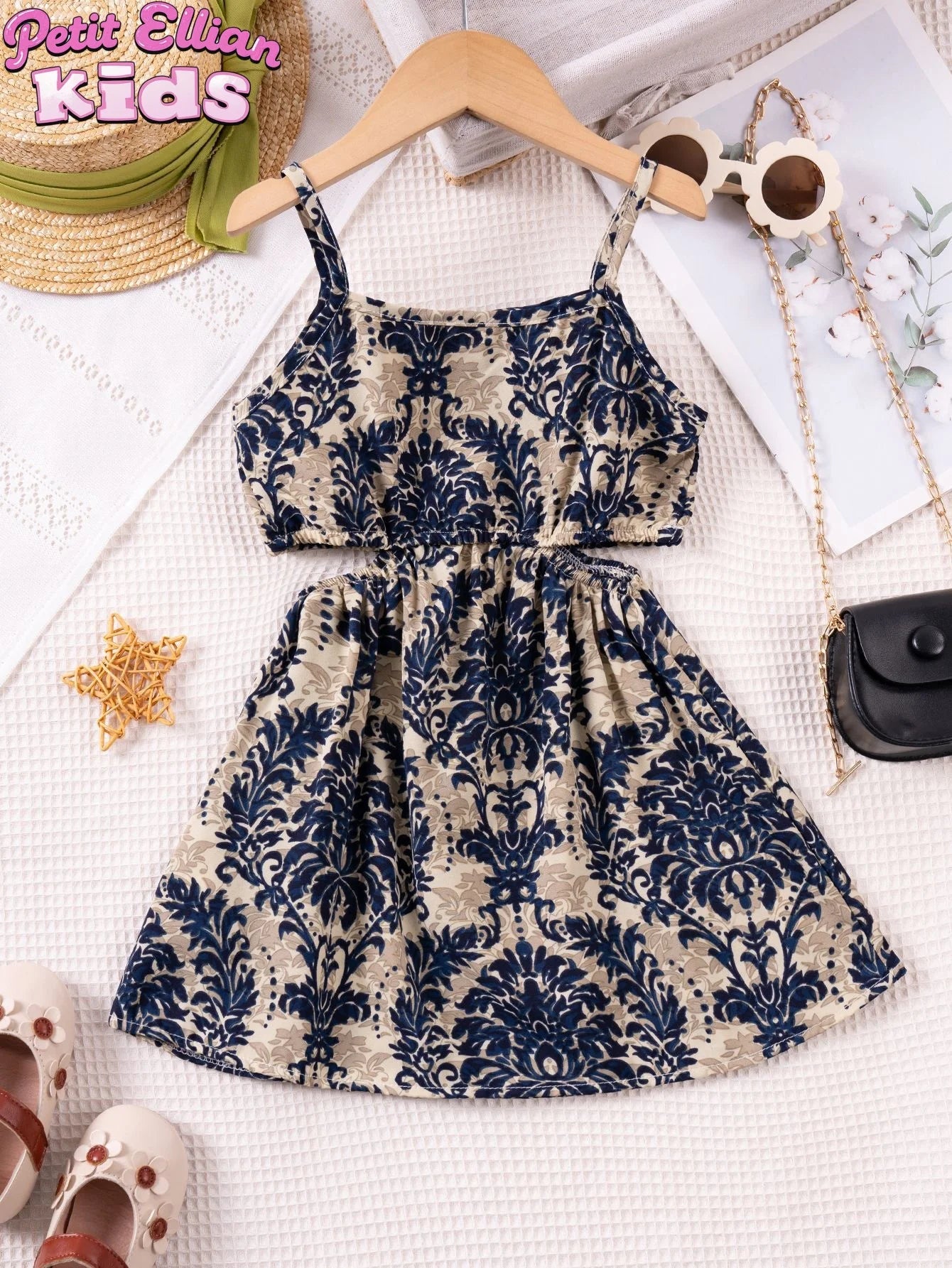 1 - 7 Y Baby Girls' Sling Cut - Out Vintage Floral Print Dress - Stylish & Breathable Summer Outfit for Kids Girls Dress