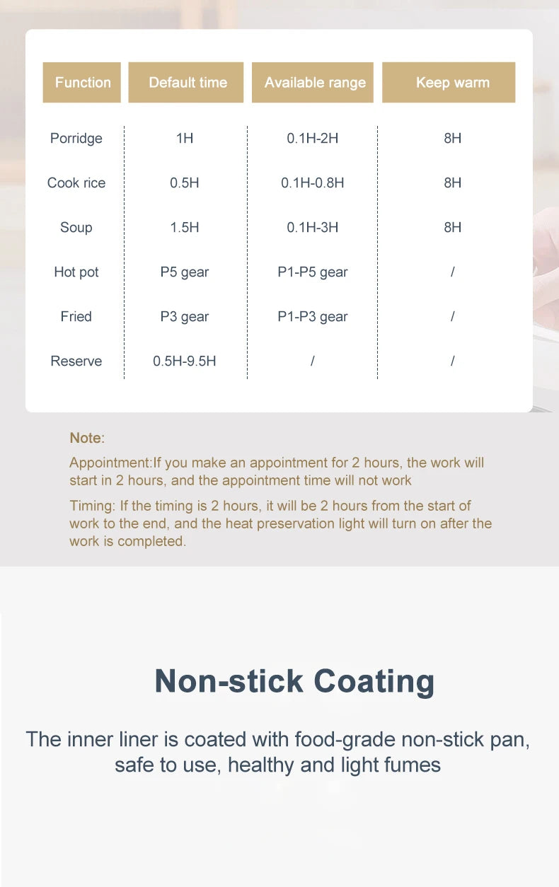 3. Multi functional rice cooker: it can be used for cooking, frying, porridge cooking, hot pot, etc