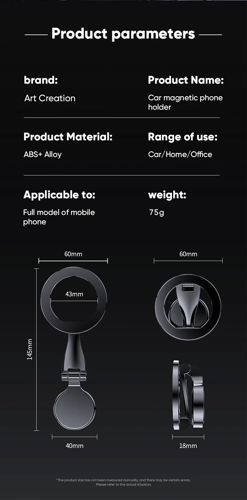 SPECIFICATIONSBrand Name: NoEnName_NullCharger: NoChoice: yesCompatible Brand: UniversalFeatures: MagneticHas Speaker: NoHign-concerned Chemical: NoneModel Number: Magnetic Foldable Car Phone HolderName: 1080 Car... Read more