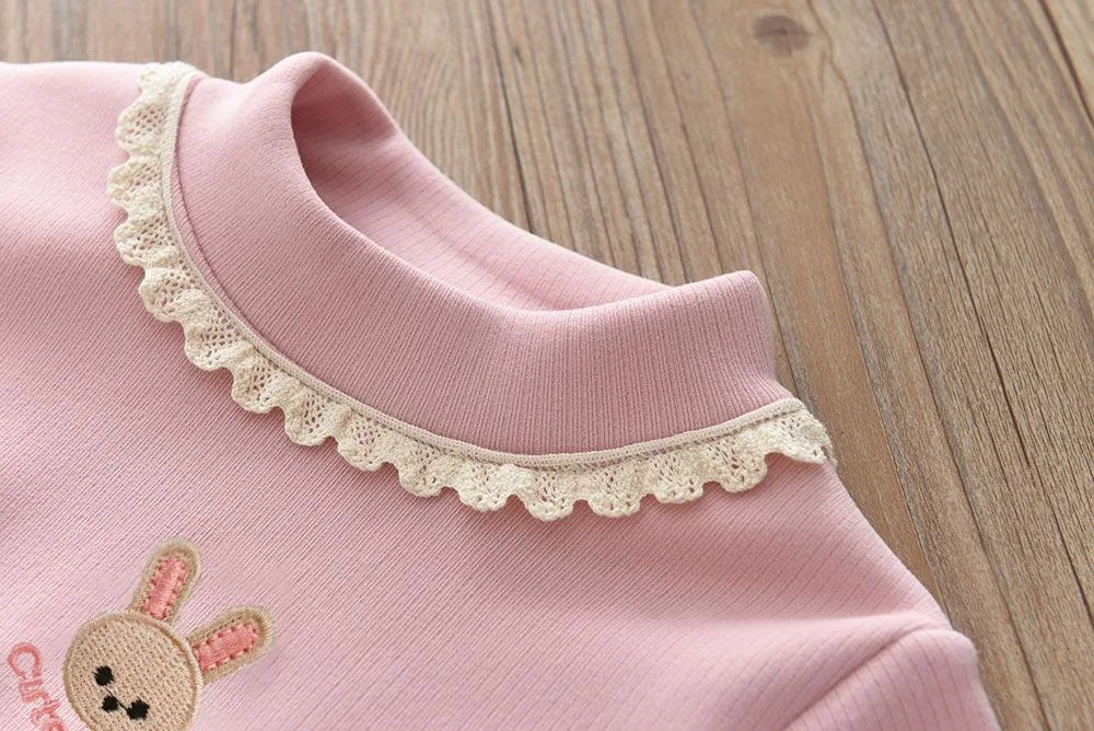 1pcs Children's T-Shirts Rabbit Embroidery Velvet warm top Kids Half High Collar Long Sleeve Base Shirt Girls Tshirts Clothes