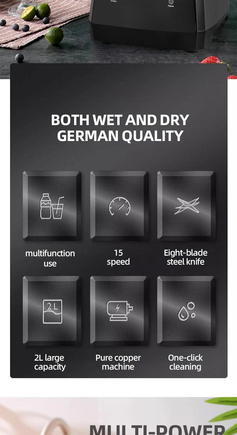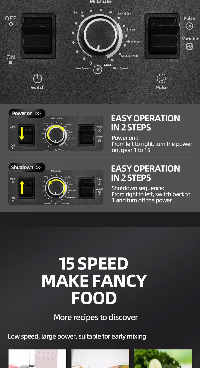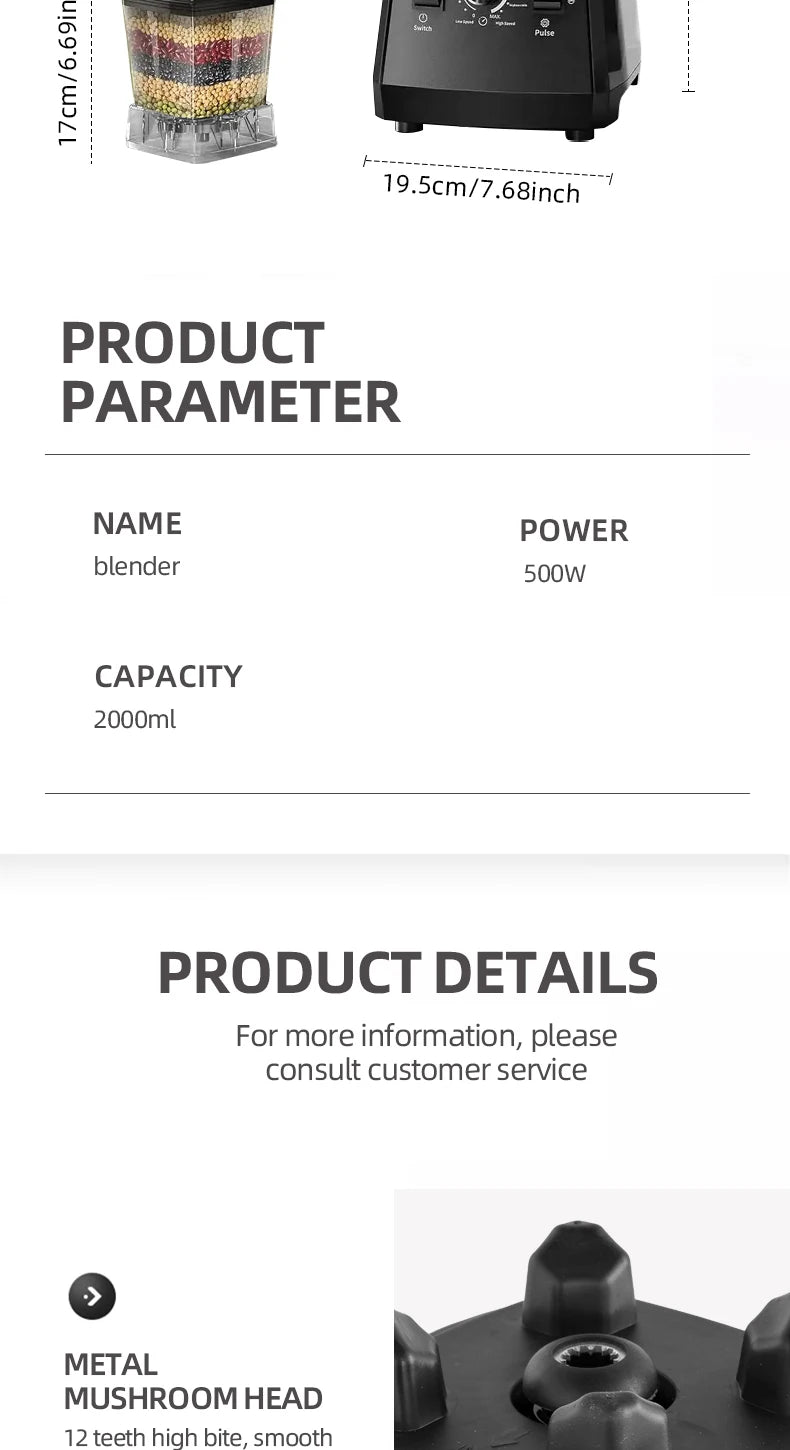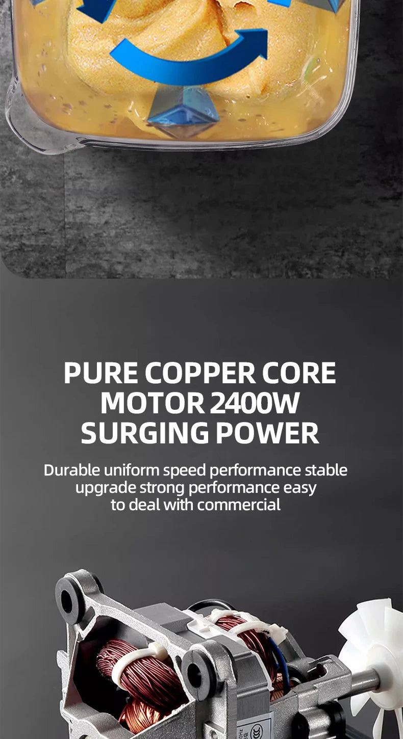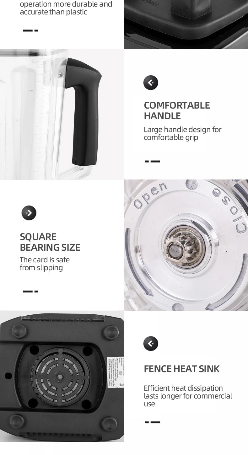 2000W Heavy Duty Commercial Blender Stationary Mixer Ice Smoothies Appliances for Kitchen Professional High Power Food Processor