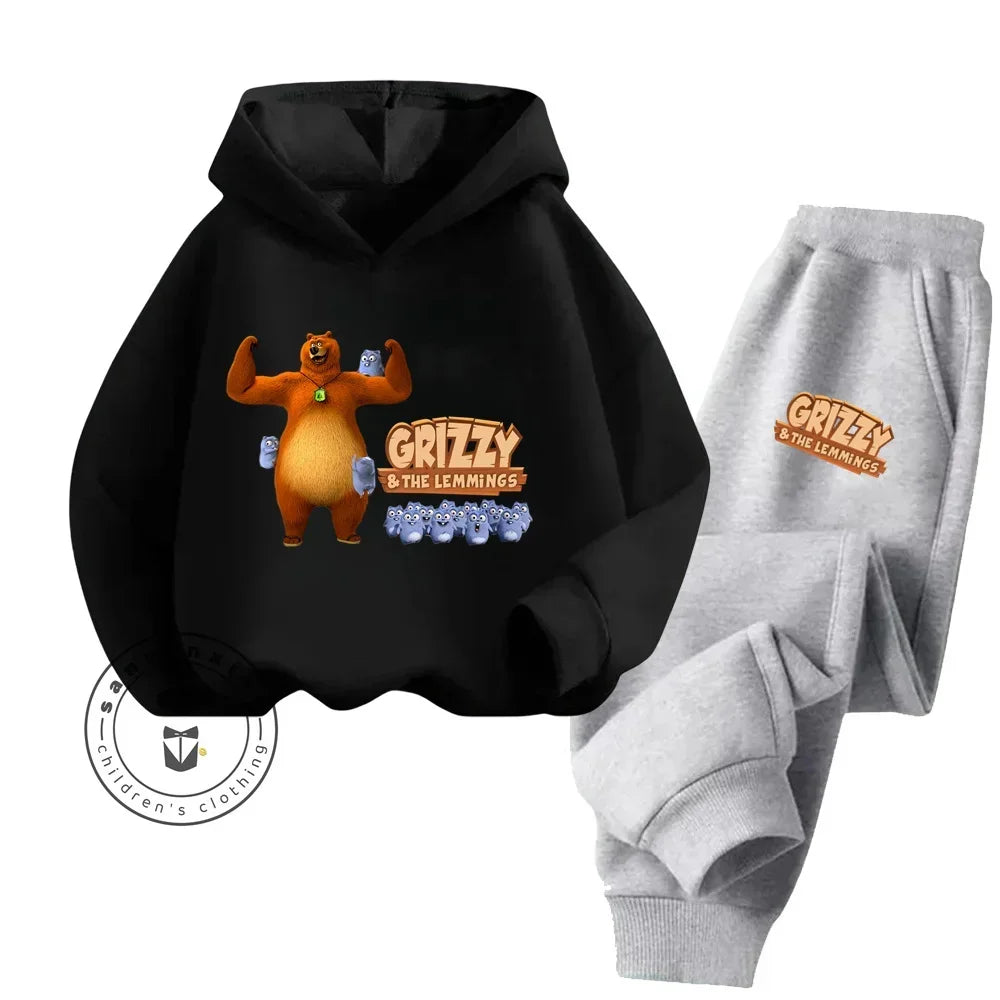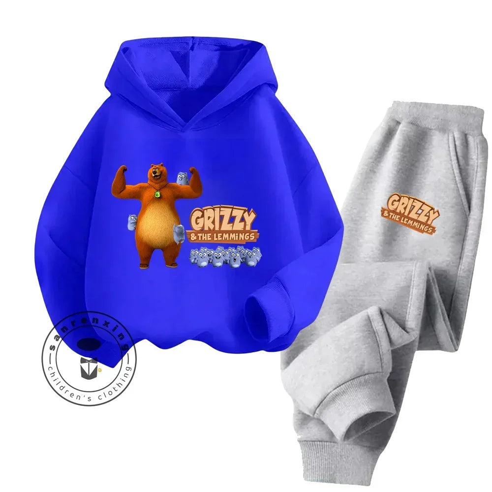 2024 Cartoon Grizzy the Lemmings Fall/Winter New Cotton 3-14 Year Old Boys and Girls Casual Hot Kawaii Printed Tracksuit