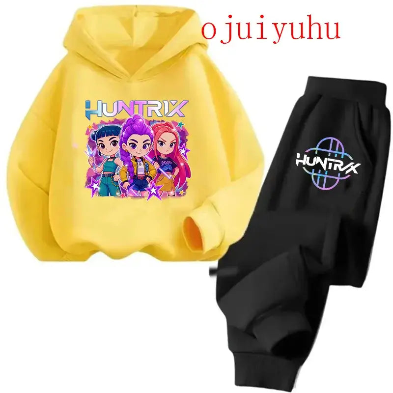 2025 movie korean style Sets Children Hoodies Kpop Demon Hunters Pullover Sweatshirt Trucksuit Cartoon Girls Boy Kids Clothes