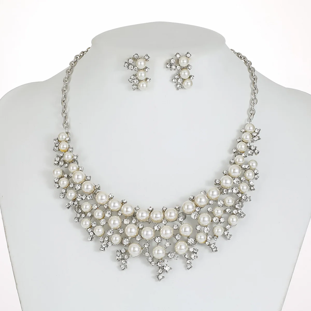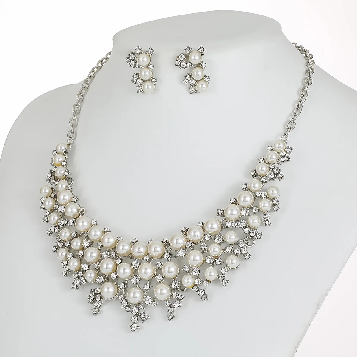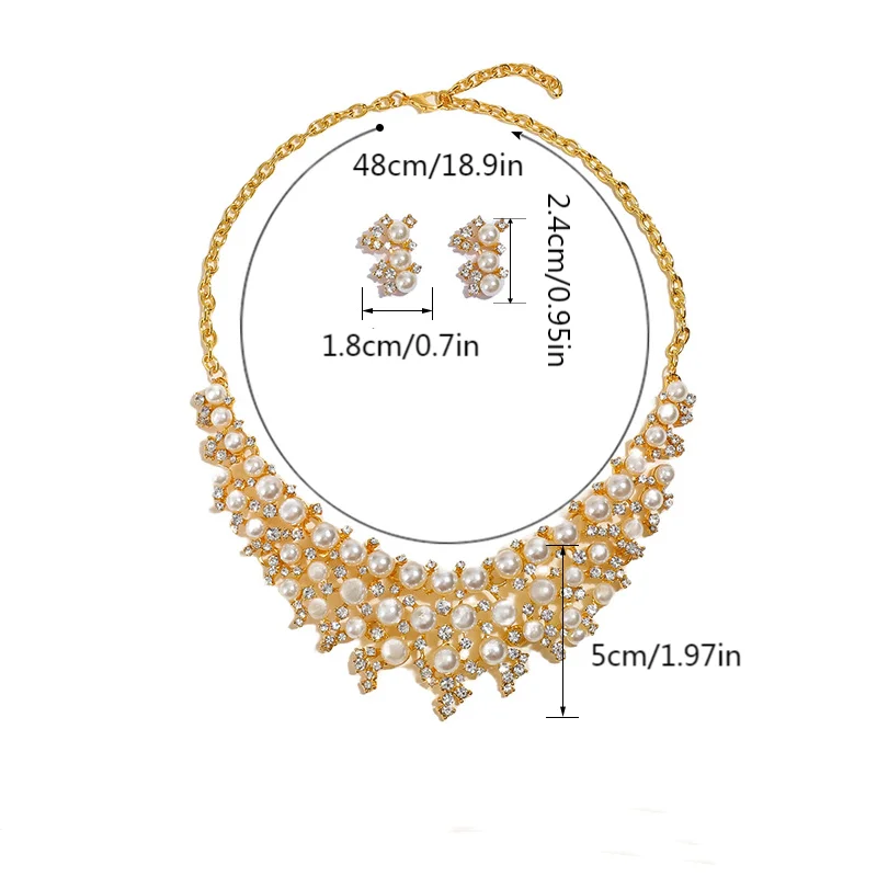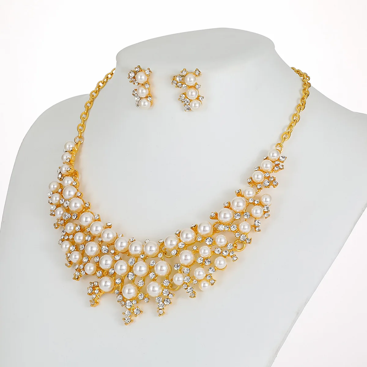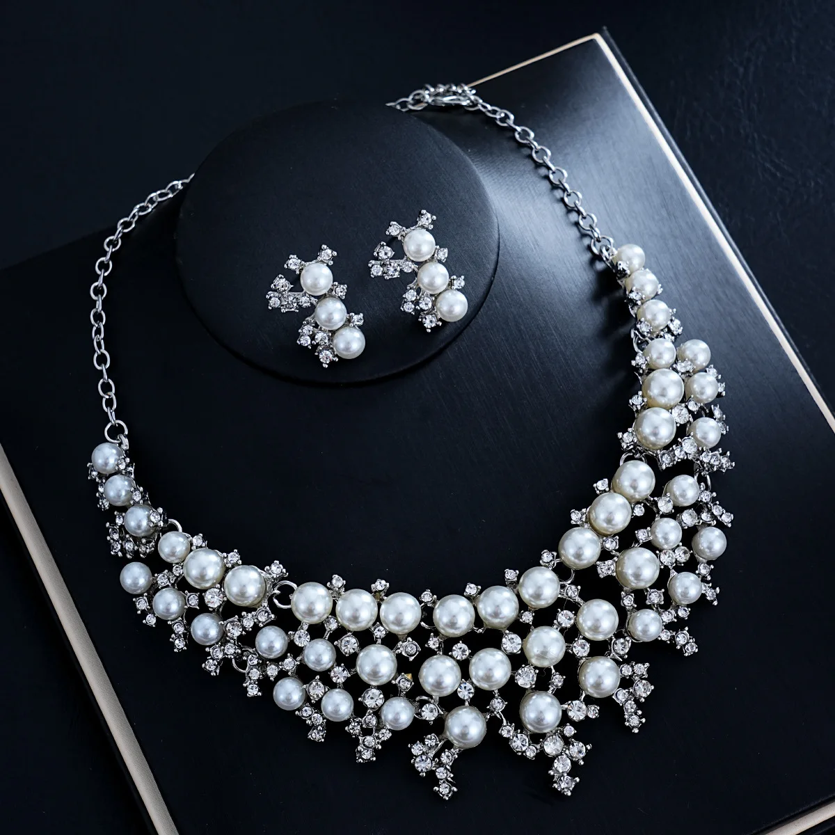 3 pieces of women's jewelry set, fashionable pearl necklace, earring set, collarbone necklace, bride's wedding jewelry