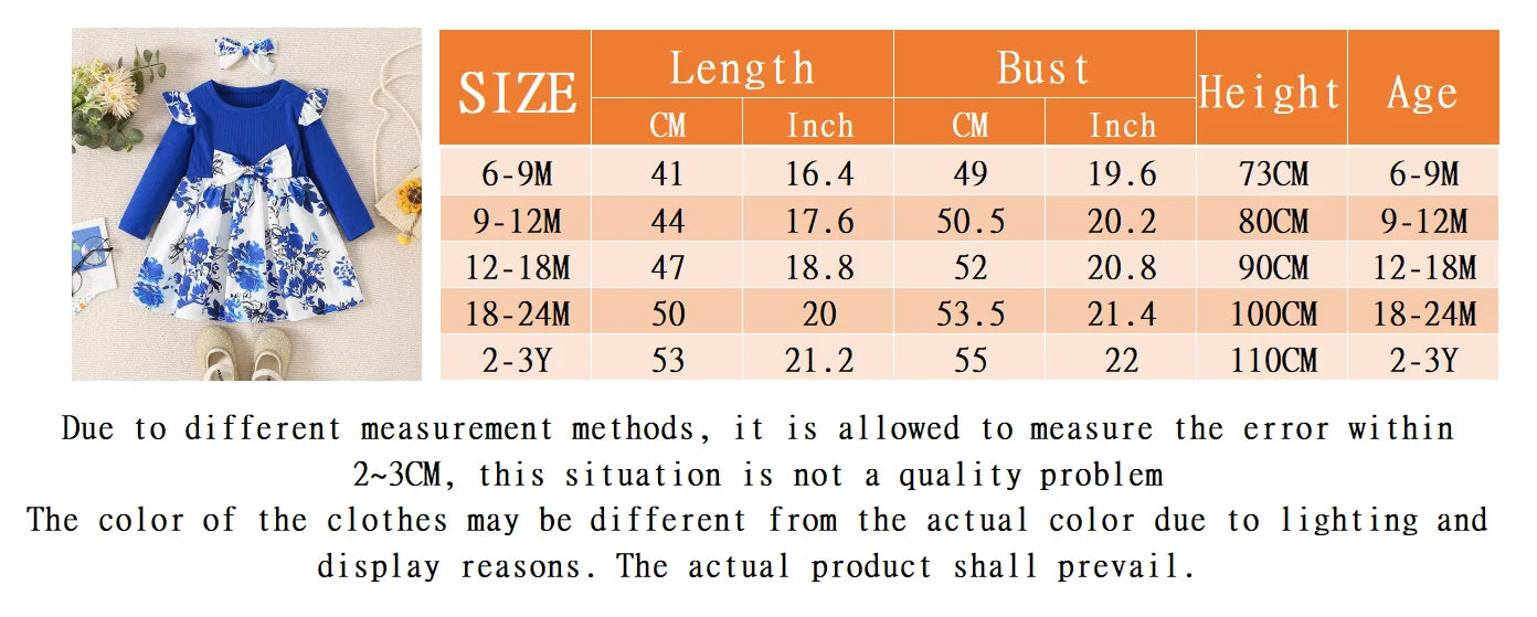 (6 Months -3 Years Old) Spring And Autumn New Blue Flower Baby Girl Dress, Chinese Retro Style Children'S Long Sleeve Clothes