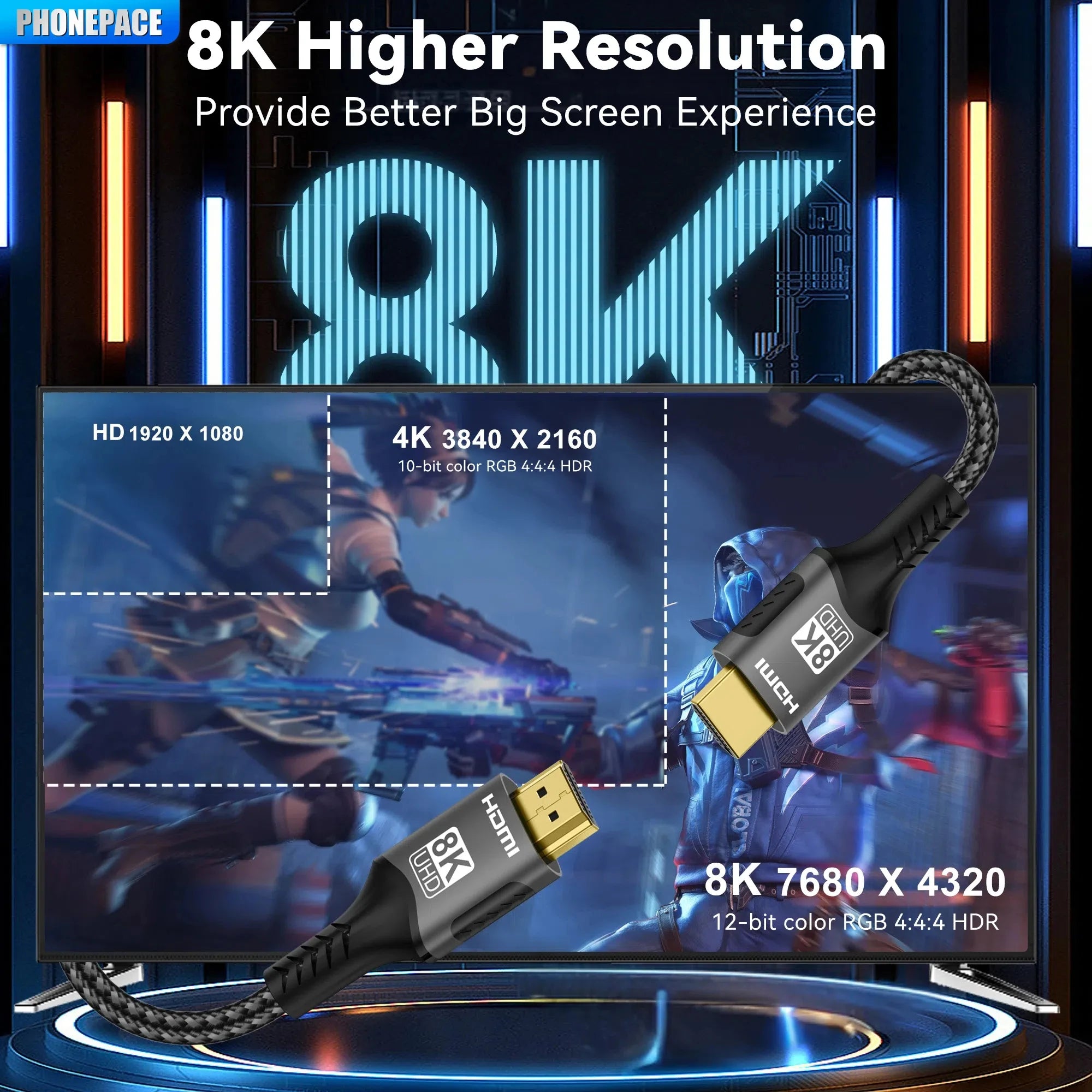 8K HDMI Cable High Speed Hdmi Cables Braided Nylon & Gold Connectors HDMI2.1 4K @ 120Hz 8K@60Hz for Laptop PS5 Xbox HDTV
