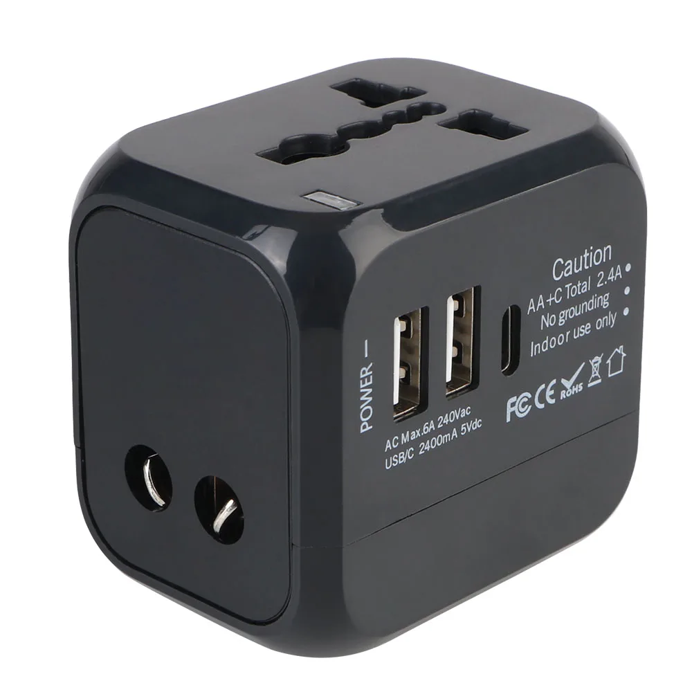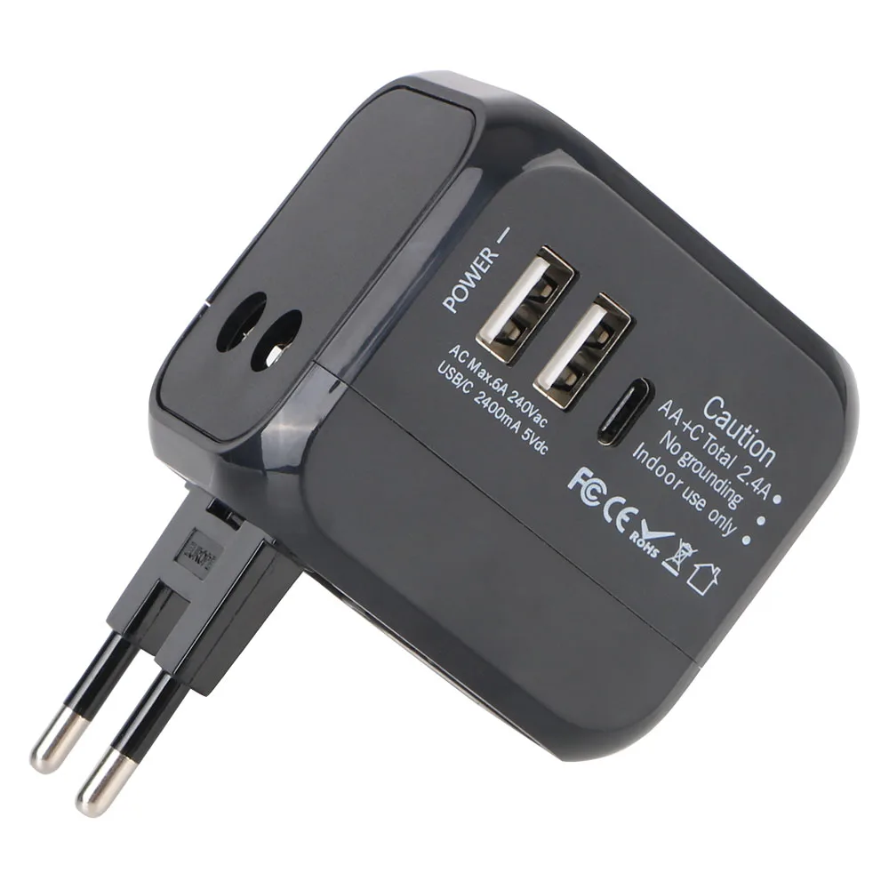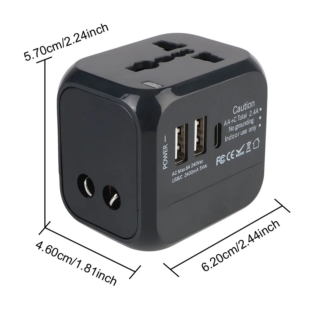 All-in-One Wall Travel Charger Adapter - US EU UK AU Plugs with 2 USB & 1 Type C, Universal for Travel