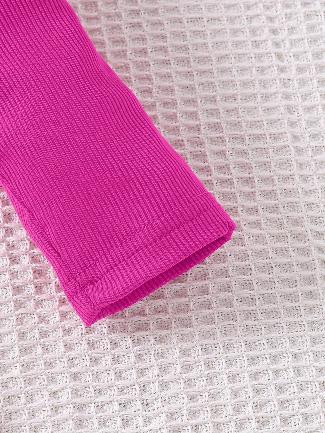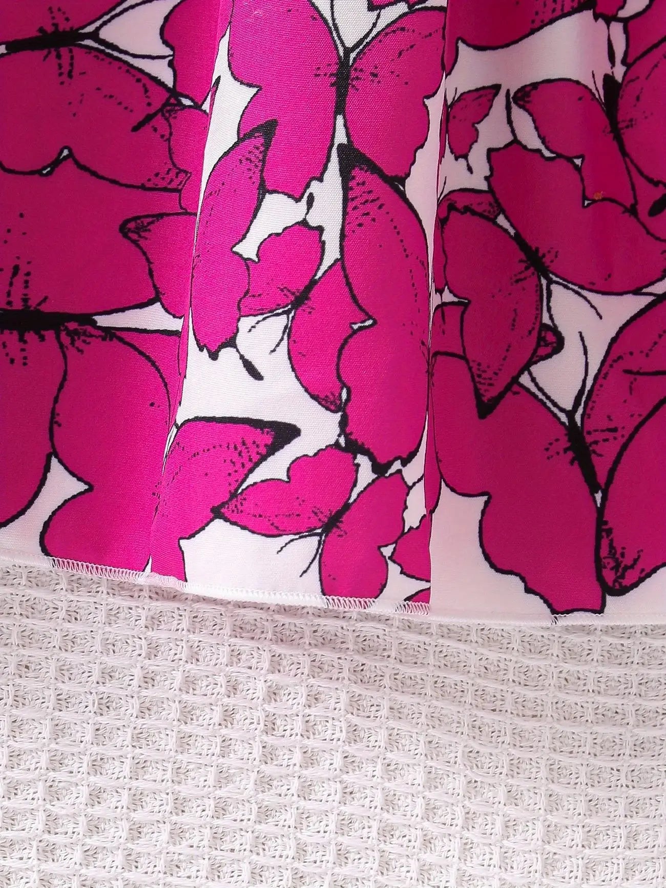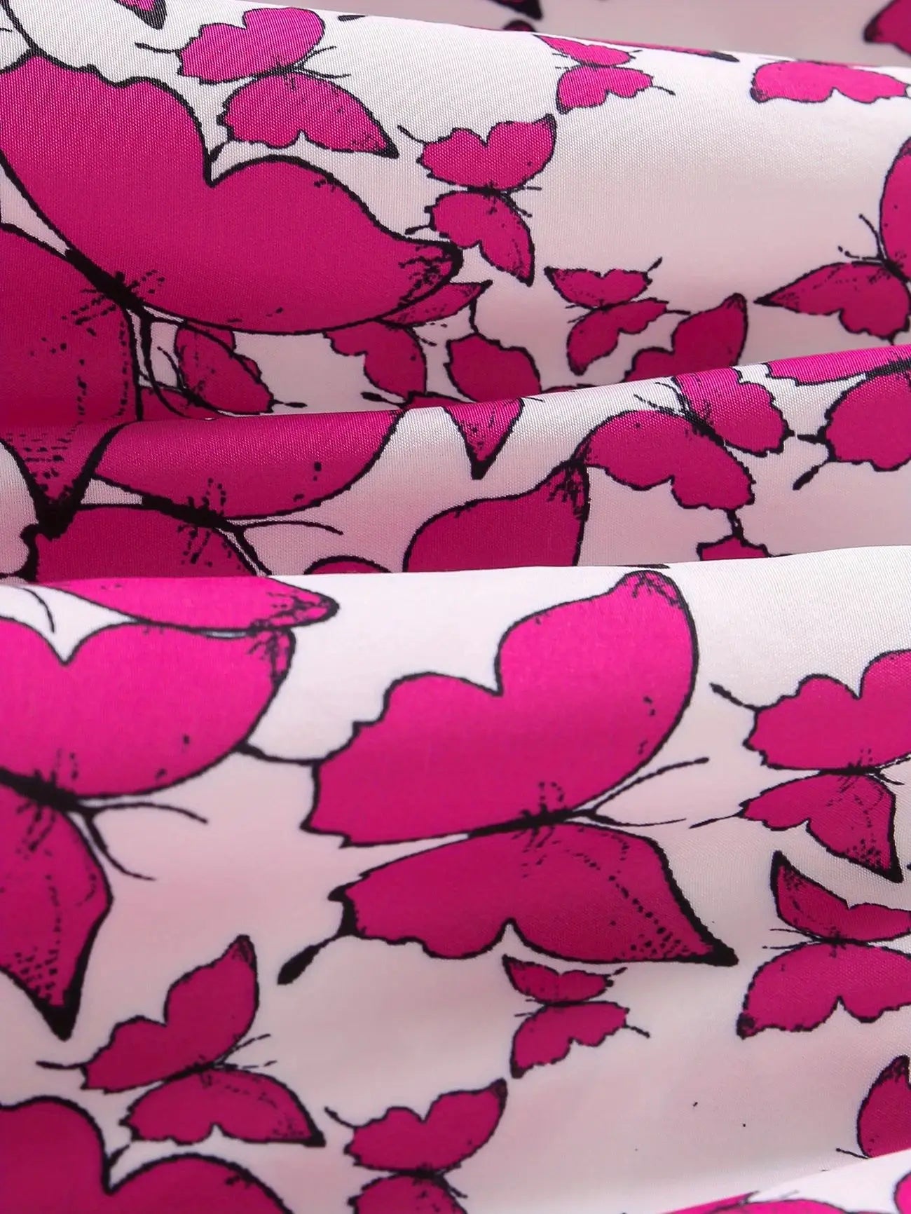 Autumn Girls' Casual And Fashionable Rose-Pink Butterfly Pattern Round-Neck Ruffled Long-Sleeved Dress