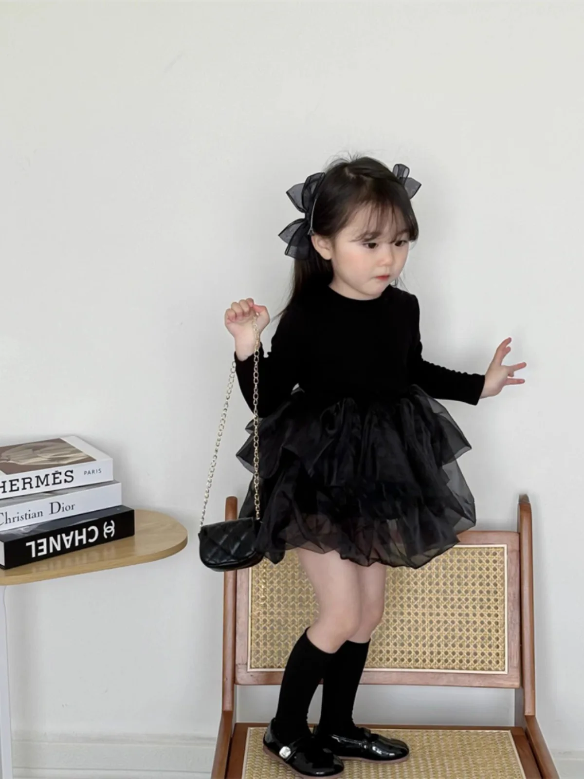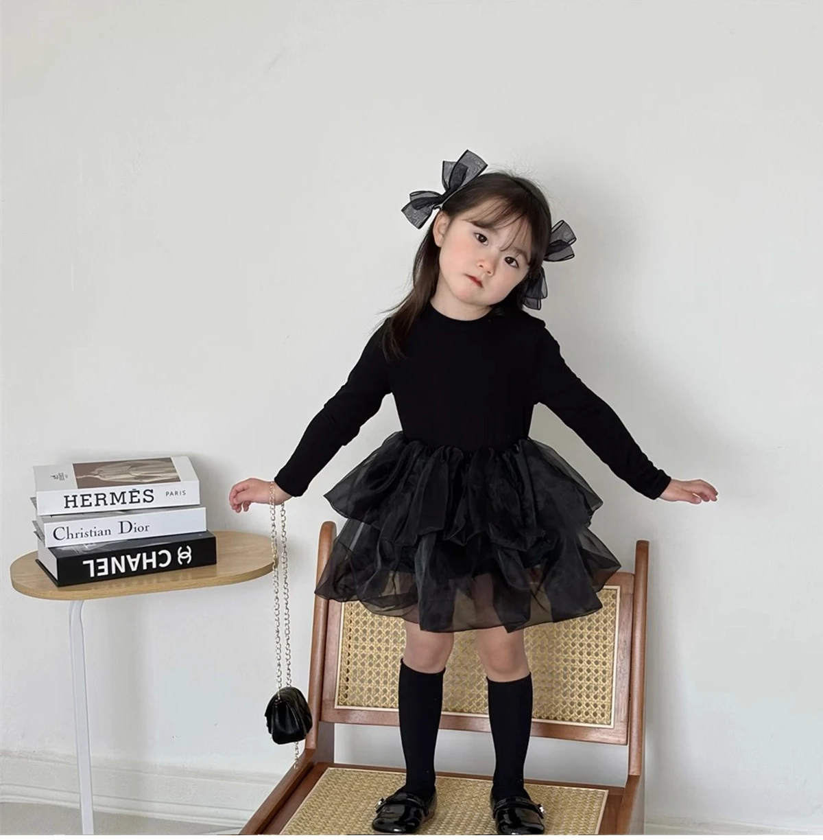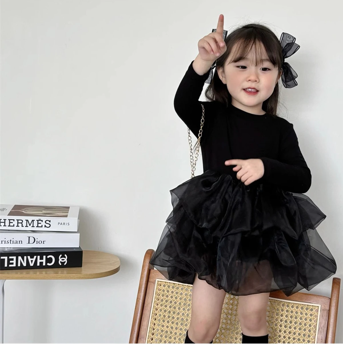 Baby Girl Black Tutu Dress Long Sleeve Autumn Child Princess Dresses 1-8Y Children Clothes One Piece Puffy Vestidos Elegant
