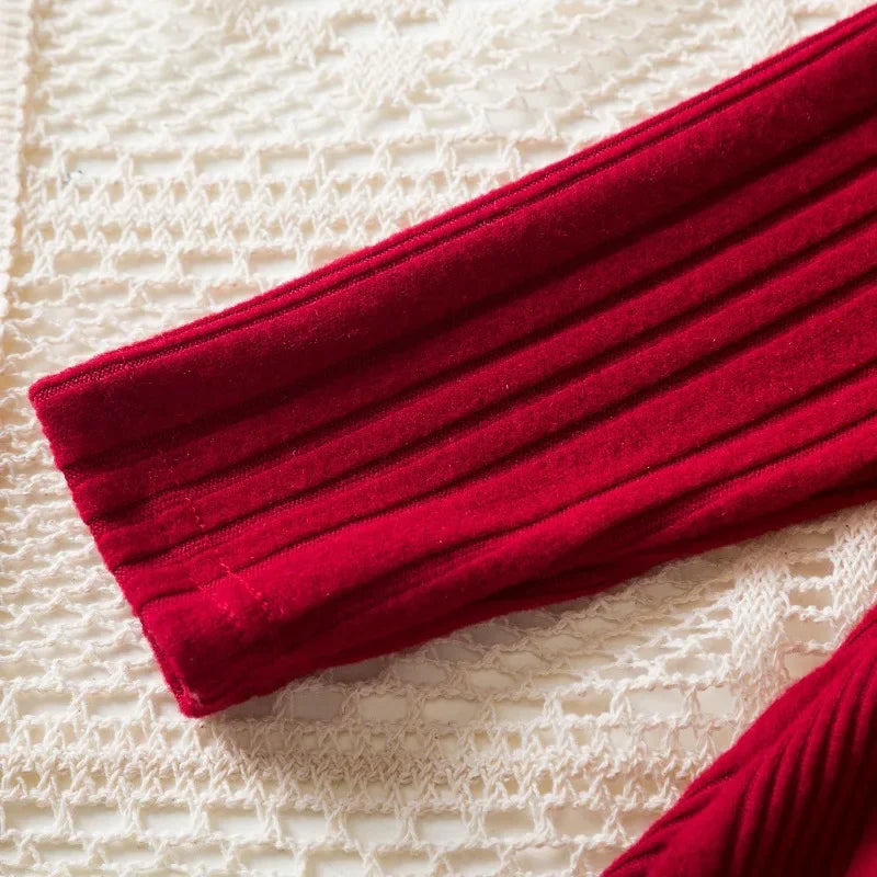 Baby Girl Button Front Solid Rib Knit Long-sleeve Dress Soft and Comfortable Perfect for Outings Daily Casual Wear Kids Clothes