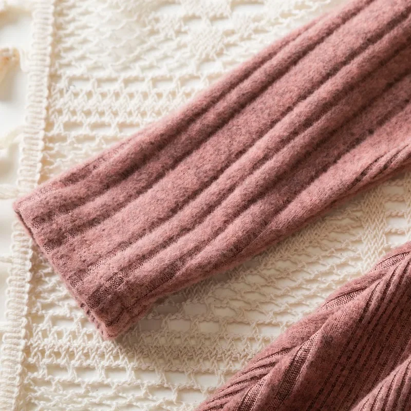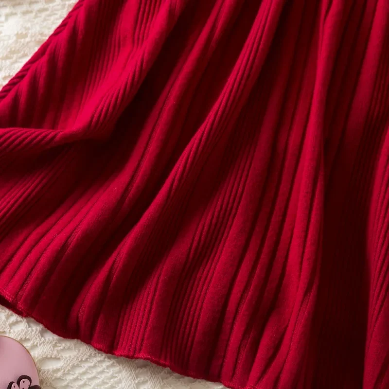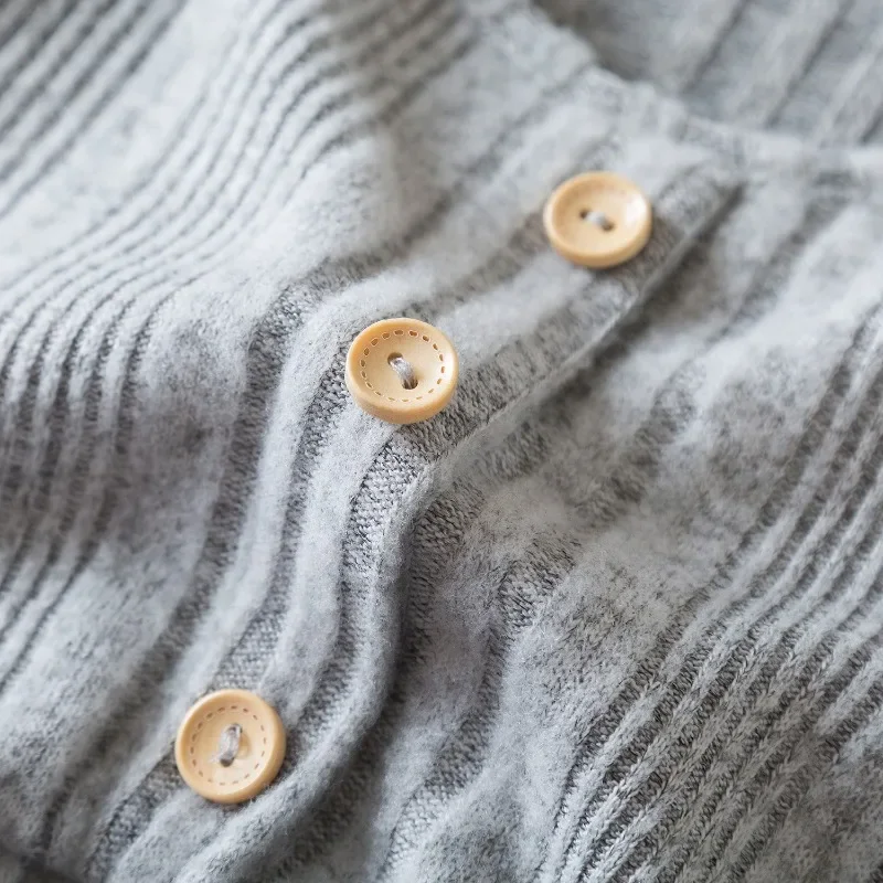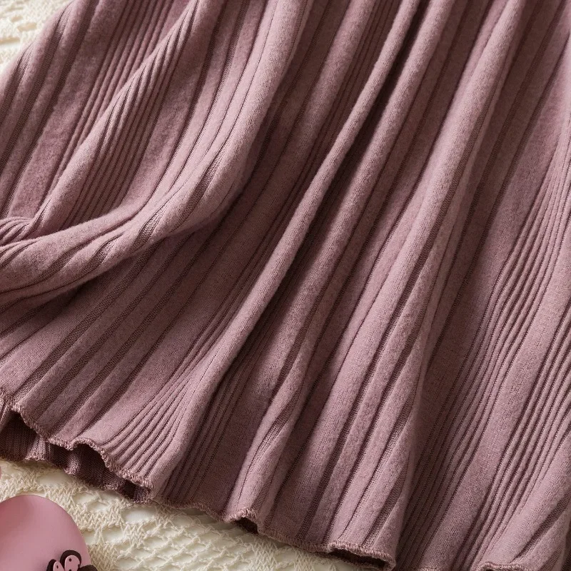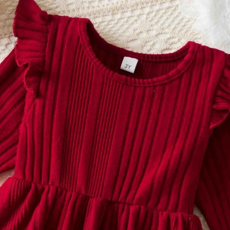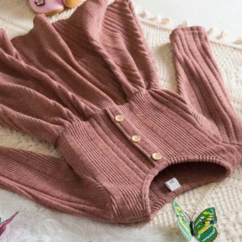 Baby Girl Button Front Solid Rib Knit Long-sleeve Dress Soft and Comfortable Perfect for Outings Daily Casual Wear Kids Clothes