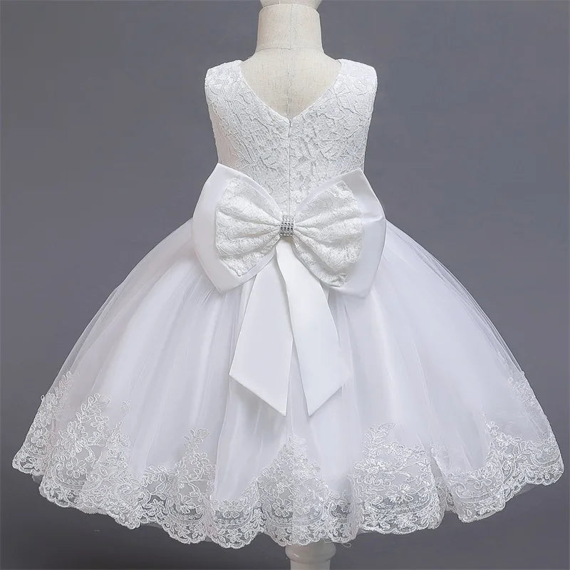 Baby Girls Dresses for 1st Birthday Party Backless Embroidery Elegant Big Bow Wedding Tutu Gown Girls Pink Formal Gala Costume