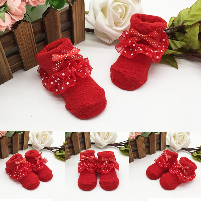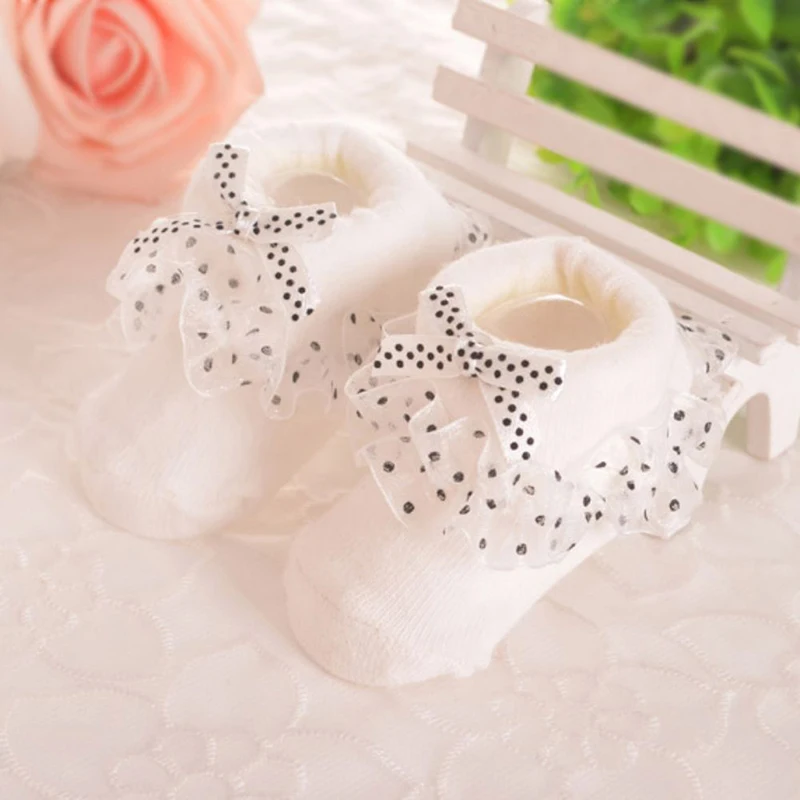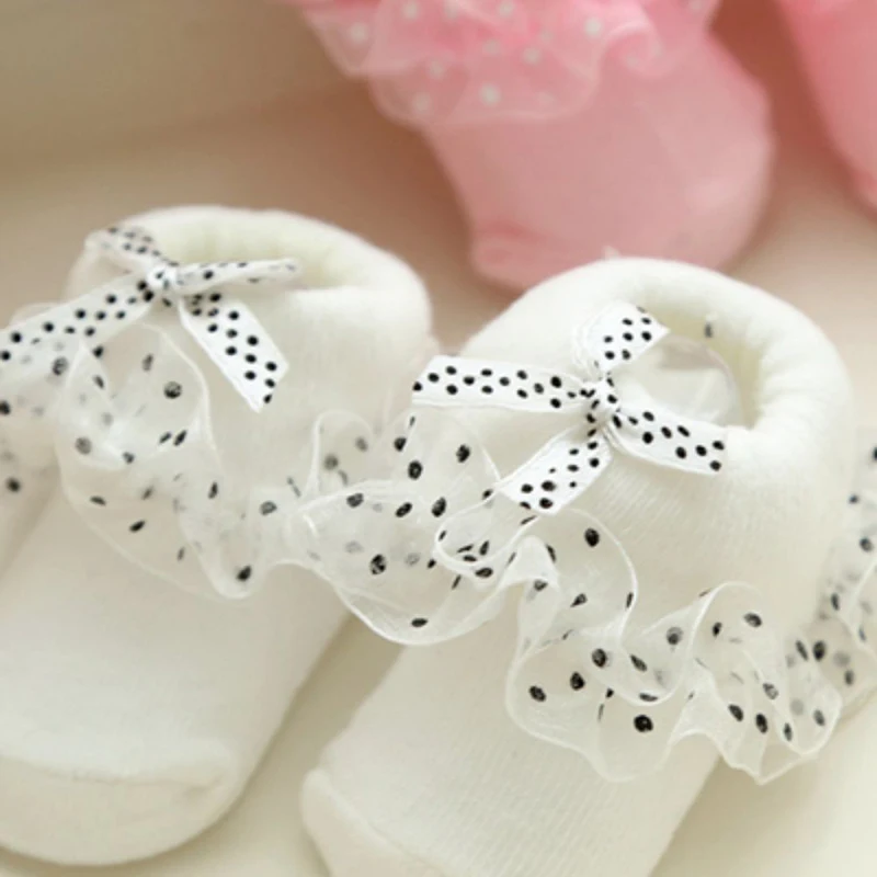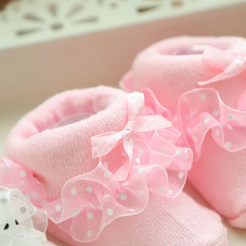 Baby Socks Newborn Infant Girl Lace Bow Socks Toddler Baby Girls Anti Slip Cotton Spring Autumn Short Sock For 0-6 Months