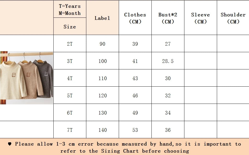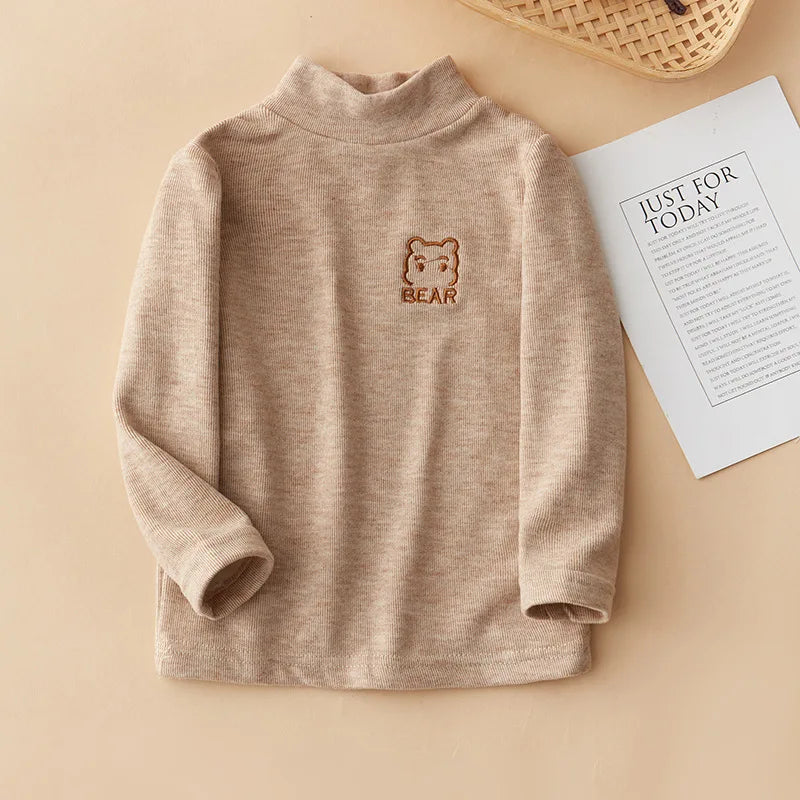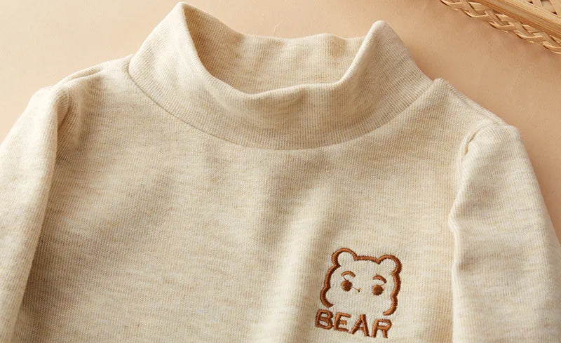Children's T-Shirts Bear Embroidery and Fleece Long Sleeve Base Shirt Girls Boys Clothes Girls Tshirts Kids Clothes Boys