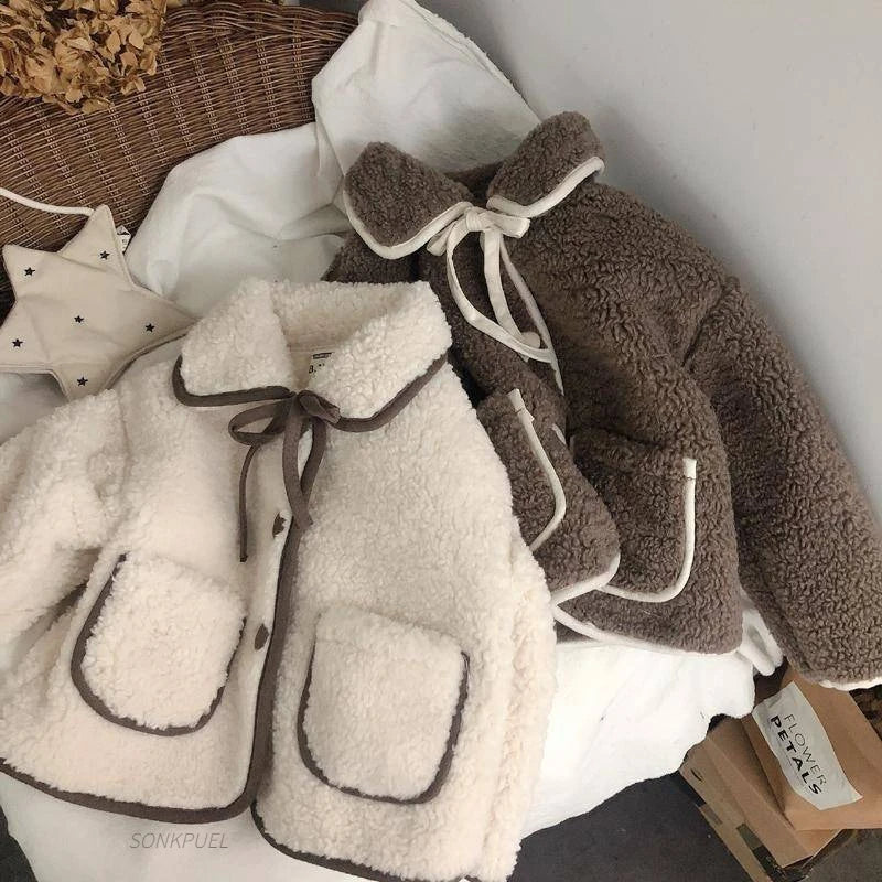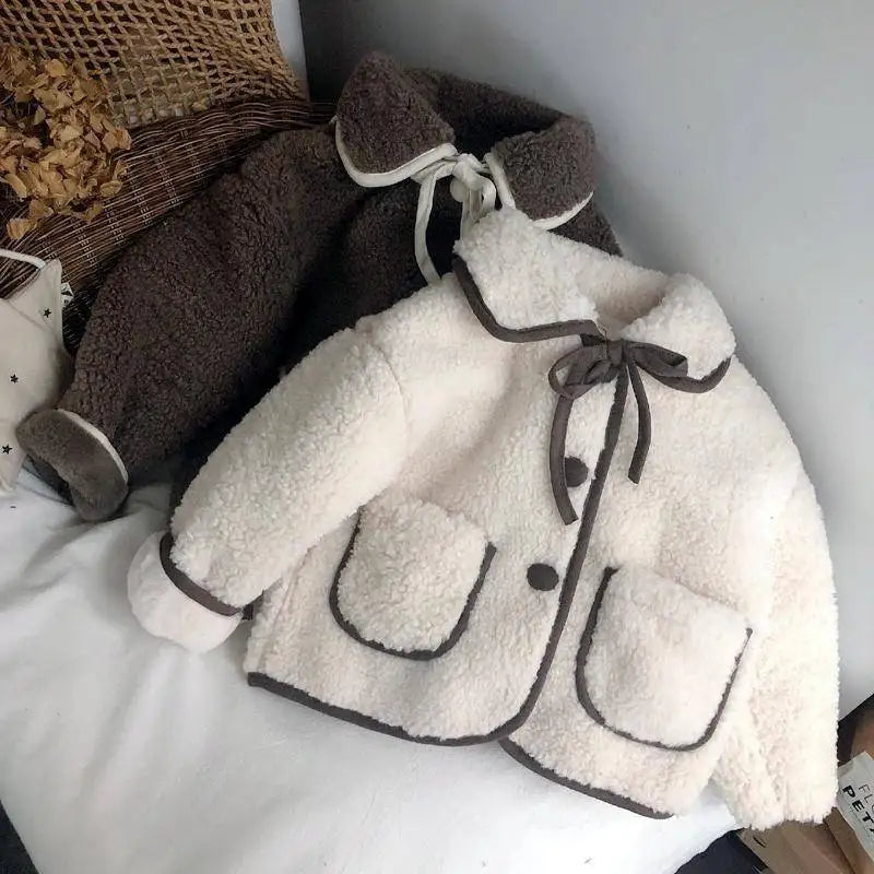 Fashion Fleece Thick Infant Toddler Child Warm Coat Toddler Outwear Collar Tie Girl Clothes 1-10Y Baby Girls Coat Winter Jacket