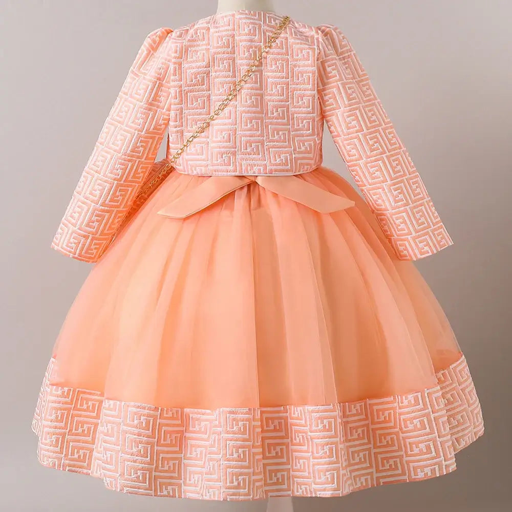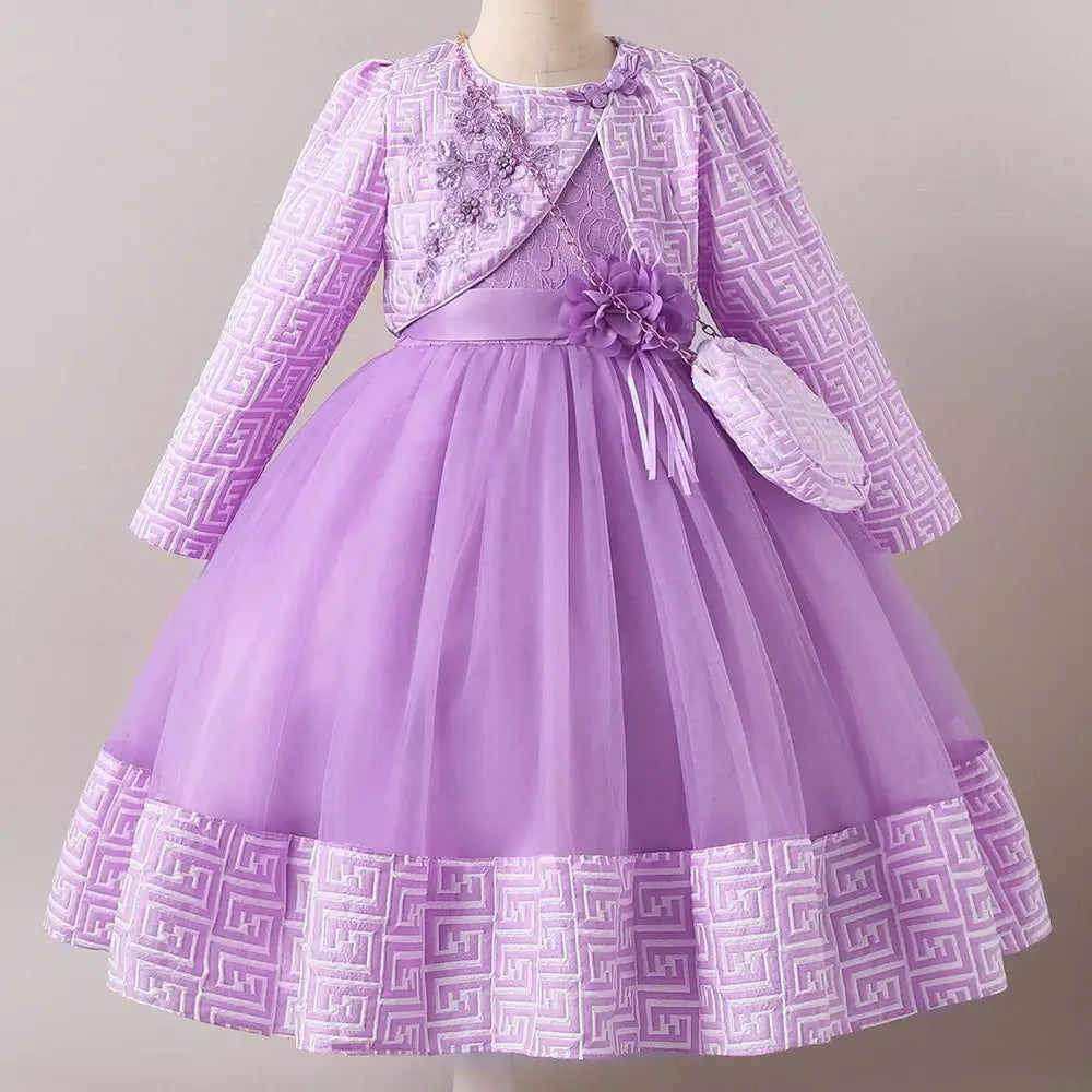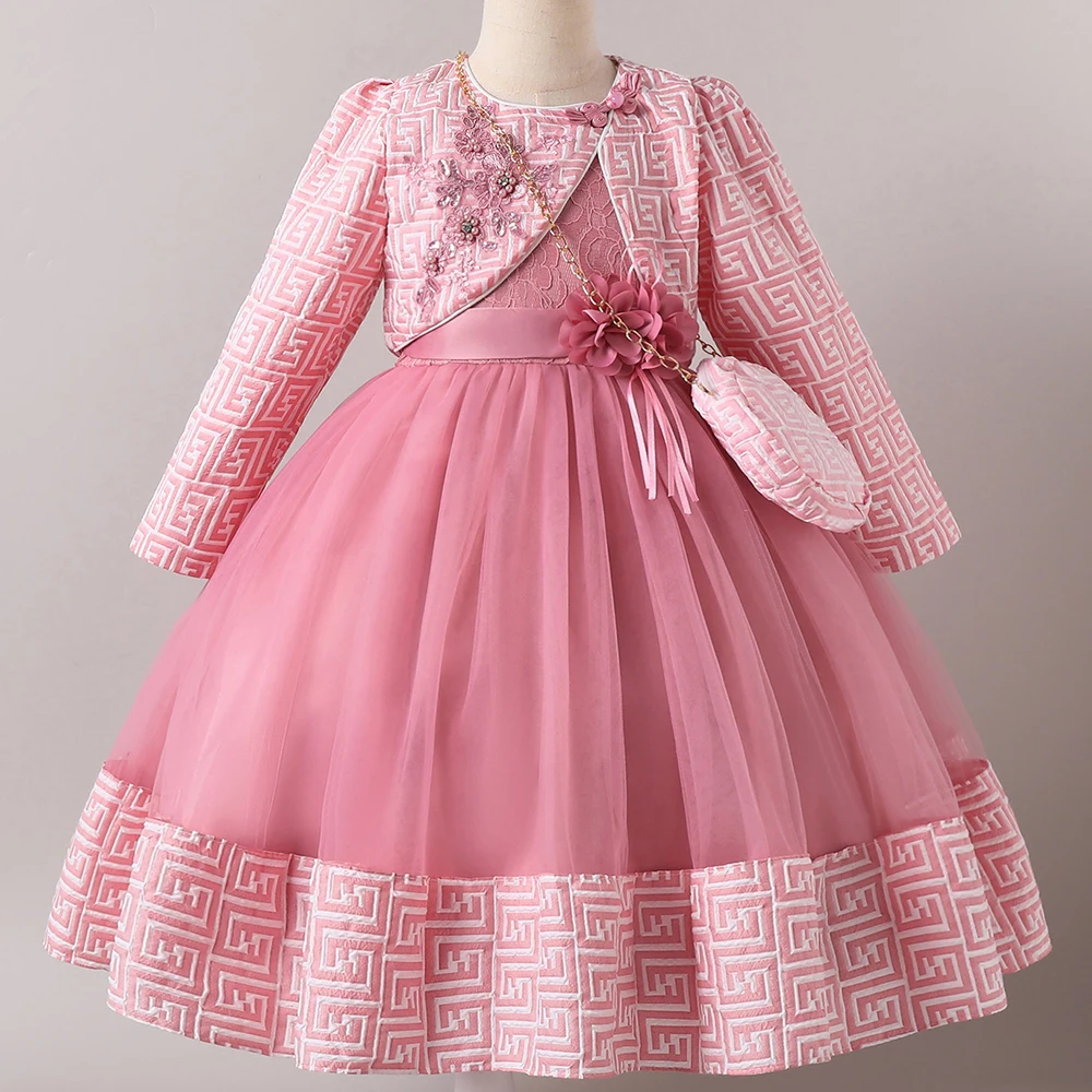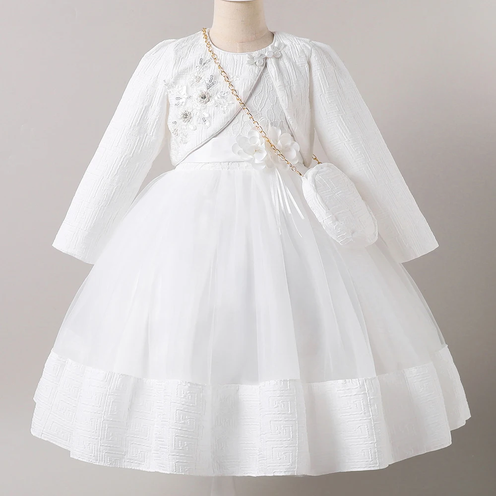 HETISO Girl Dresses with Bag long Sleeve Coat Tulle Princess Ball Gown for Kids in Party Birthday Graduation Christmas 3-10Y