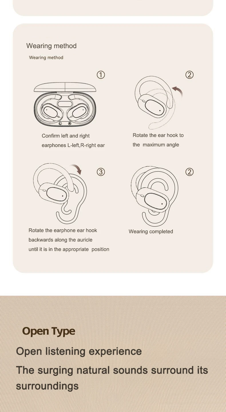 Ear hanging design: Stable and snug fit, suitable for sports scenes, even during intense exercise, it is not easy to fall off.