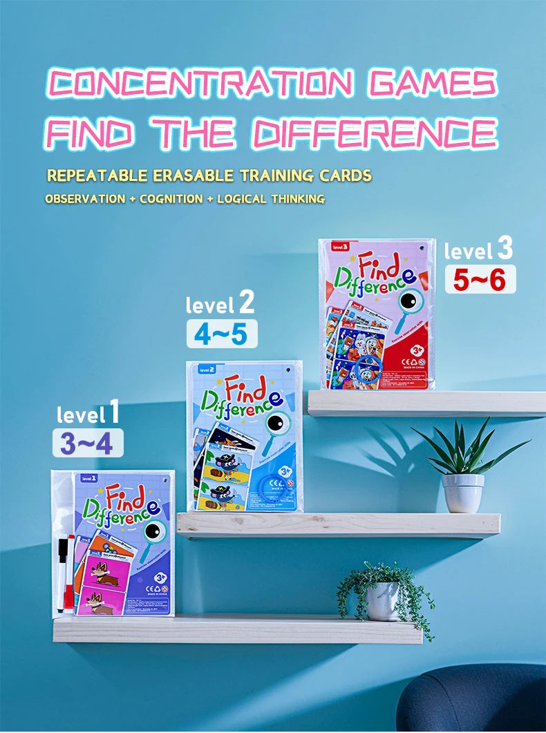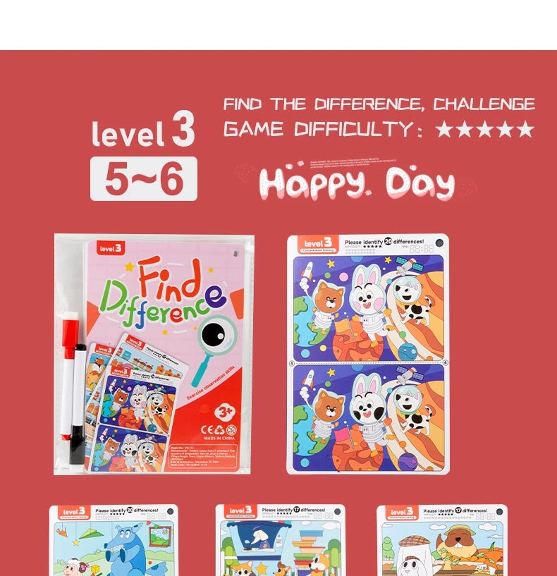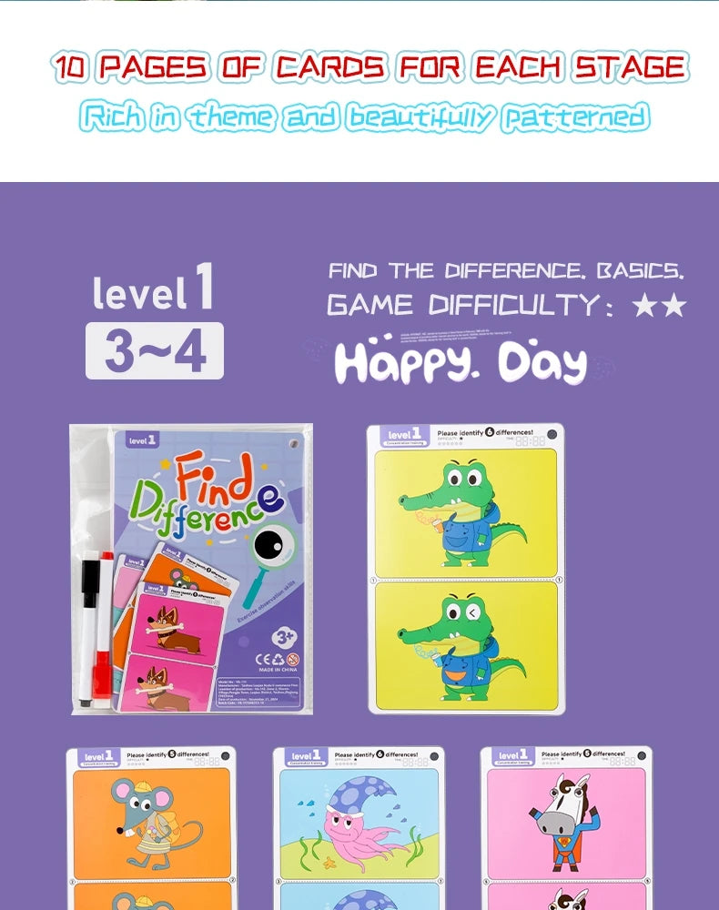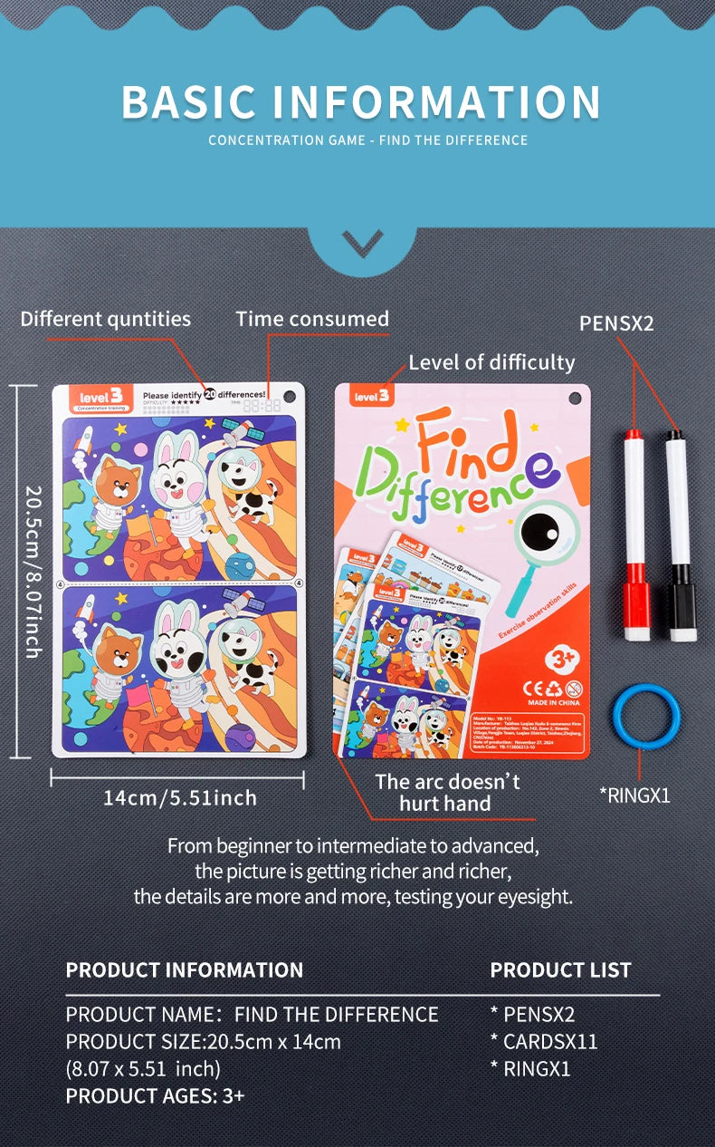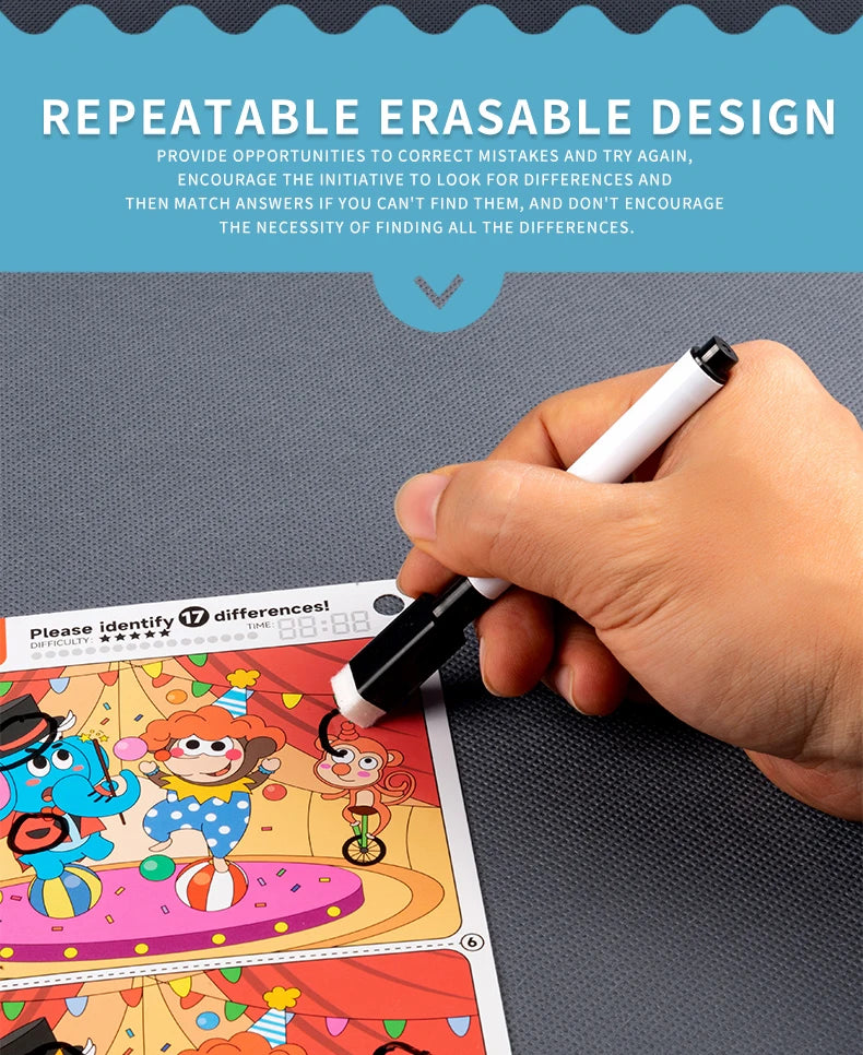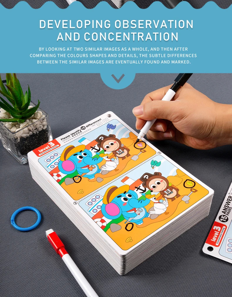 Kid's Find Difference Drawing Circle Game Learning Educational Children Training Concentration Activities Toys for Birthday Gift