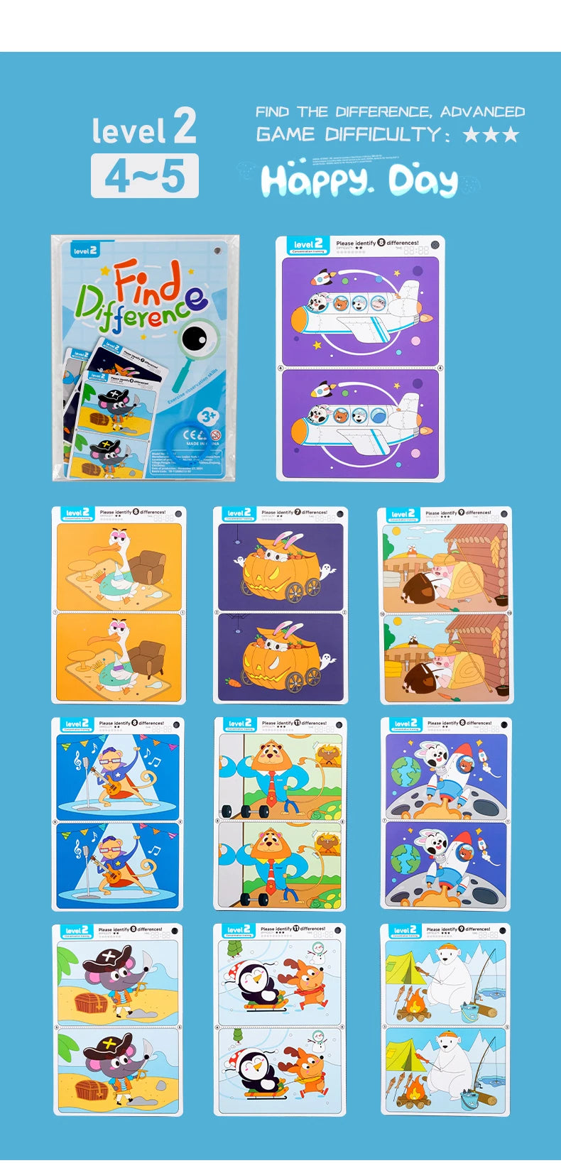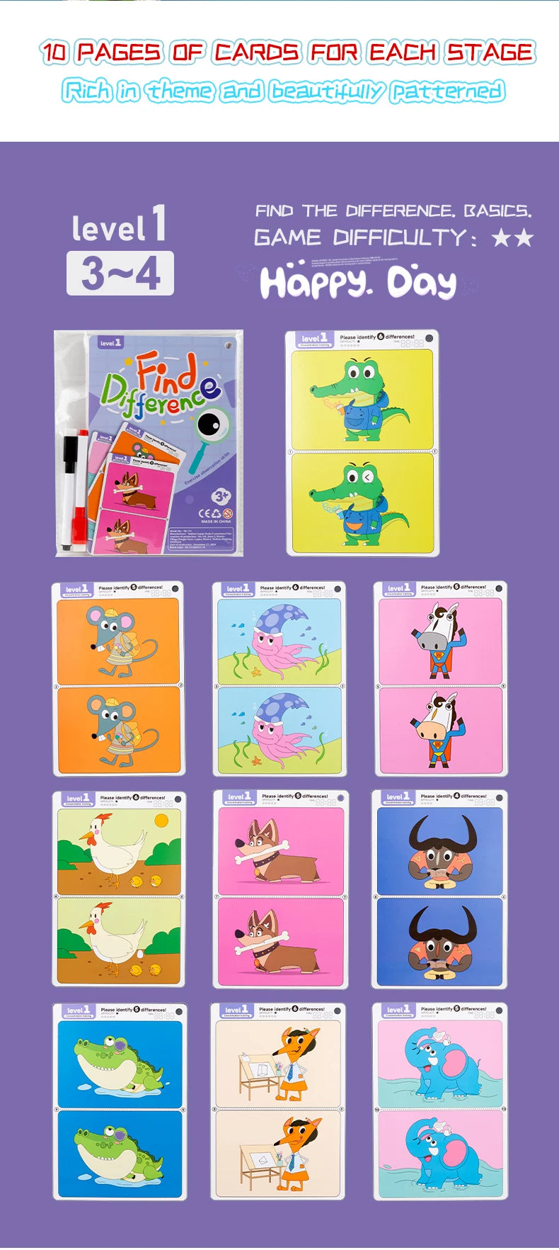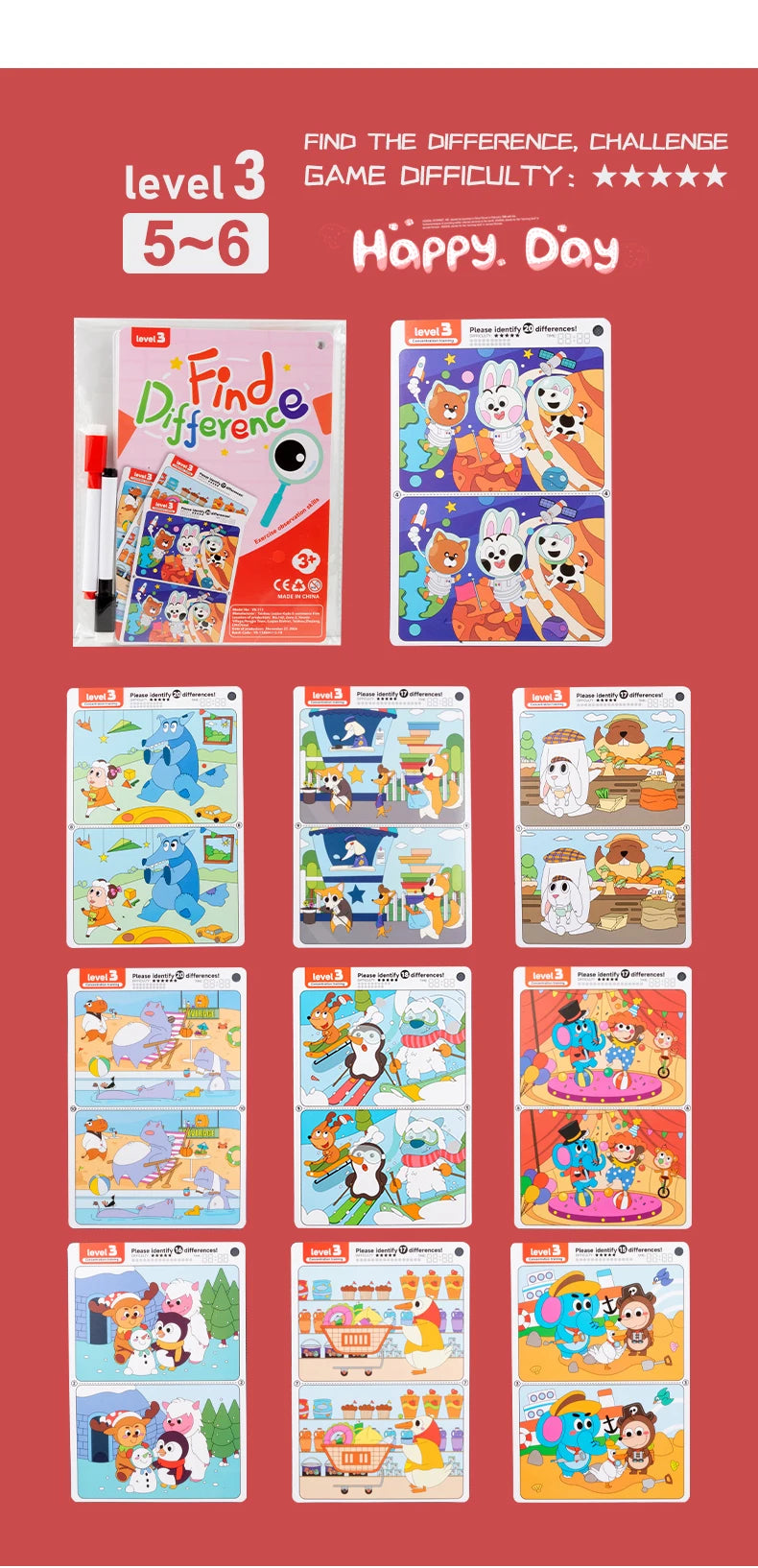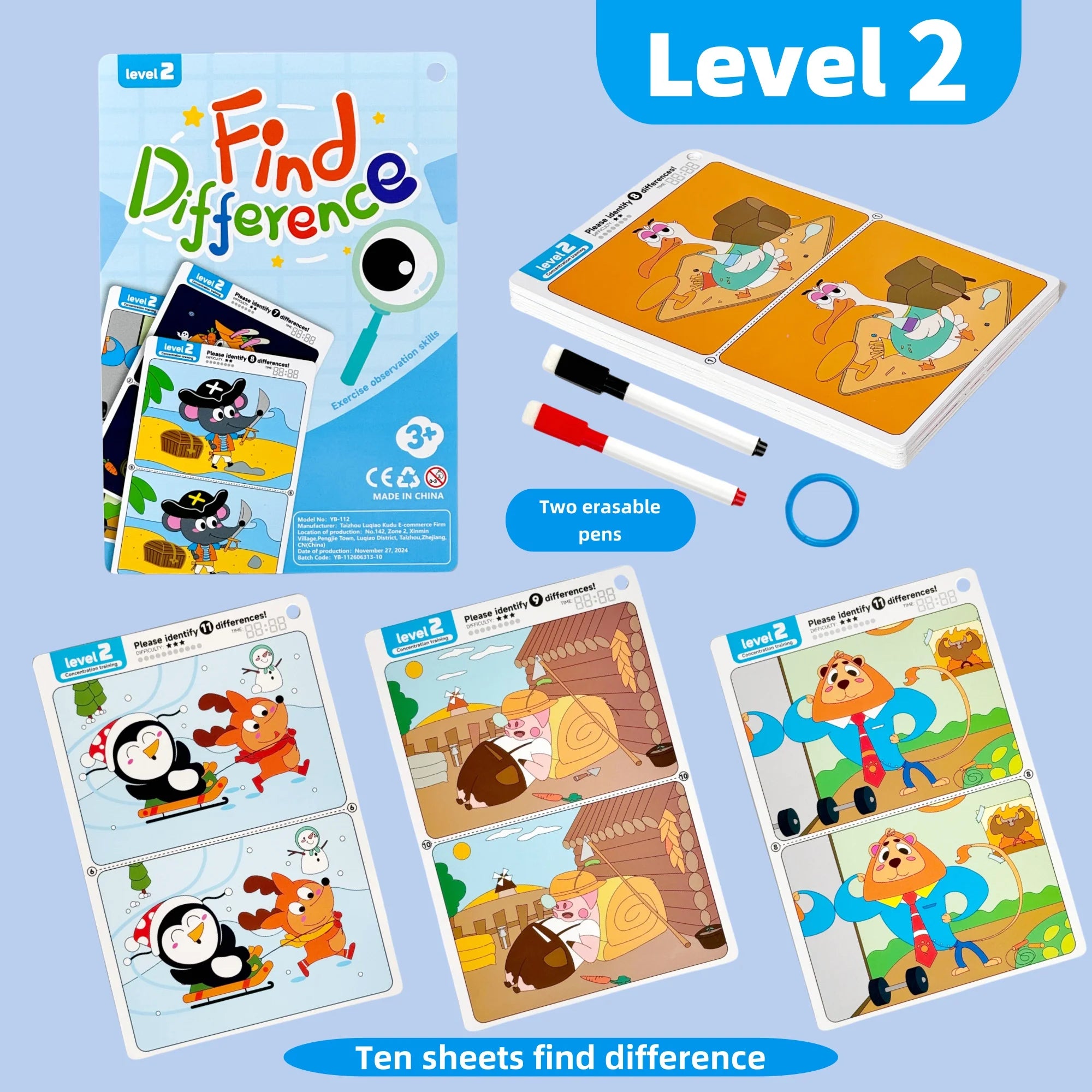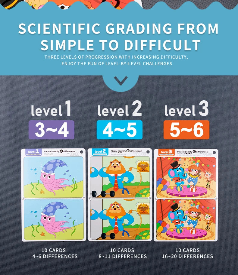 Kid's Find Difference Drawing Circle Game Learning Educational Children Training Concentration Activities Toys for Birthday Gift