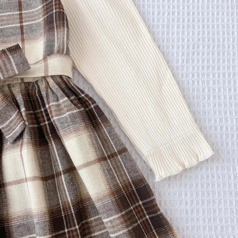 Korean Version Long Sleeved Shirt Fake Two-piece with Belt+Print Hat Outfits 3-7 Years Old Autumn New Plaid Girls Casual Dresses