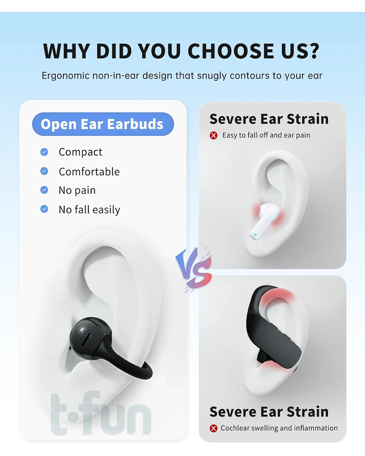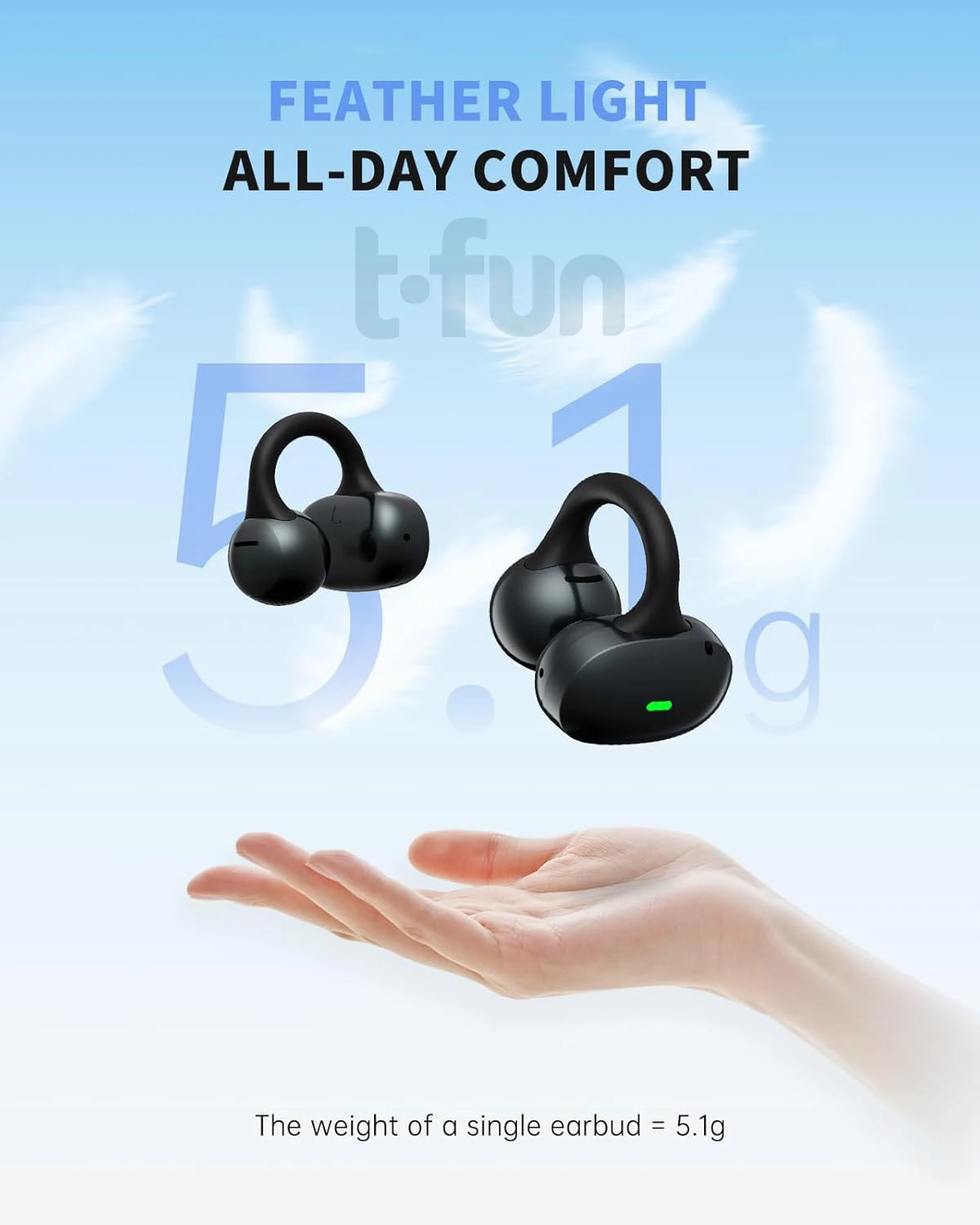 Open Ear Earbuds, Clip-On Earbuds Wireless Bluetooth, Ear Clip Bluetooth Headphones, Lightweight Comfort, Ergonomic Secure Fit