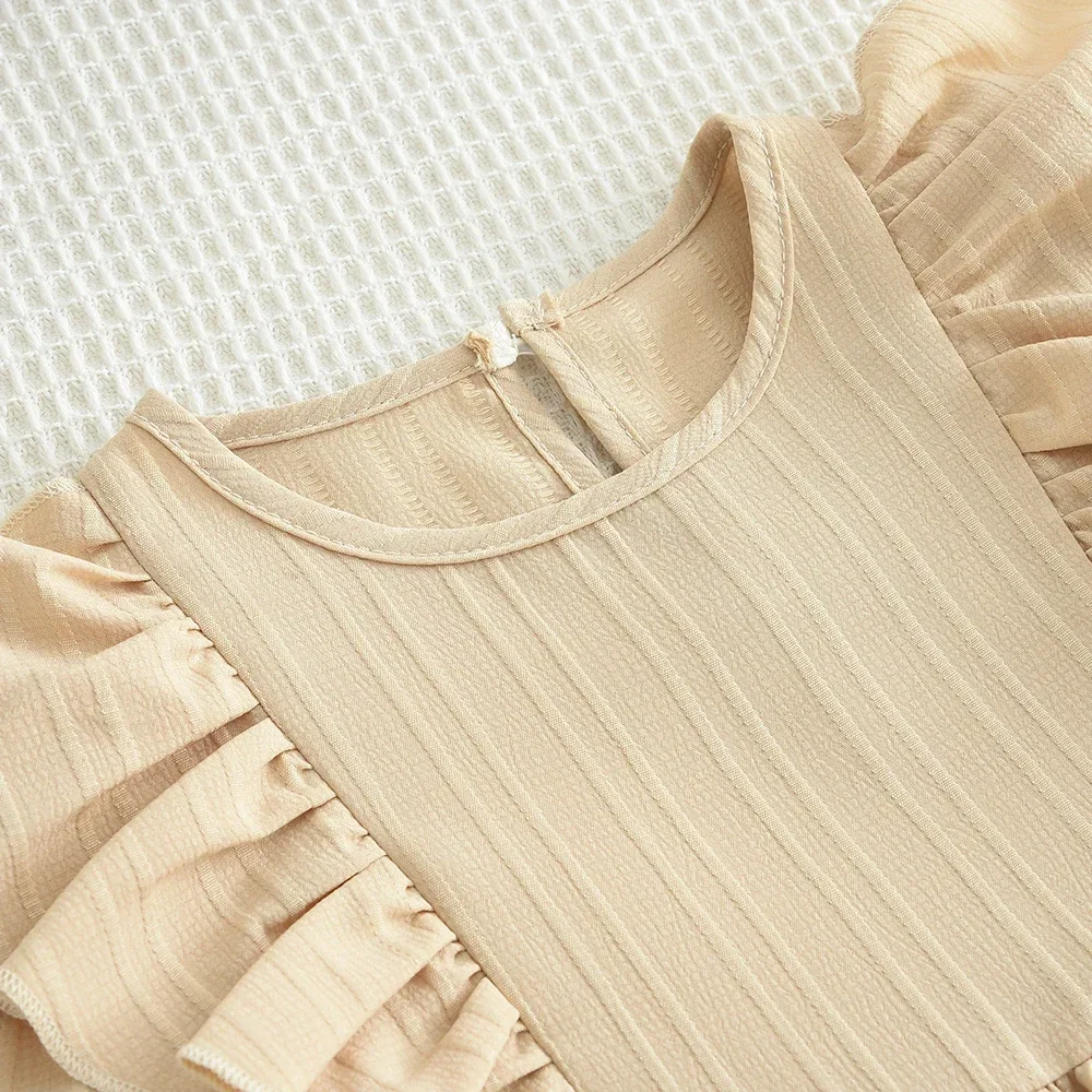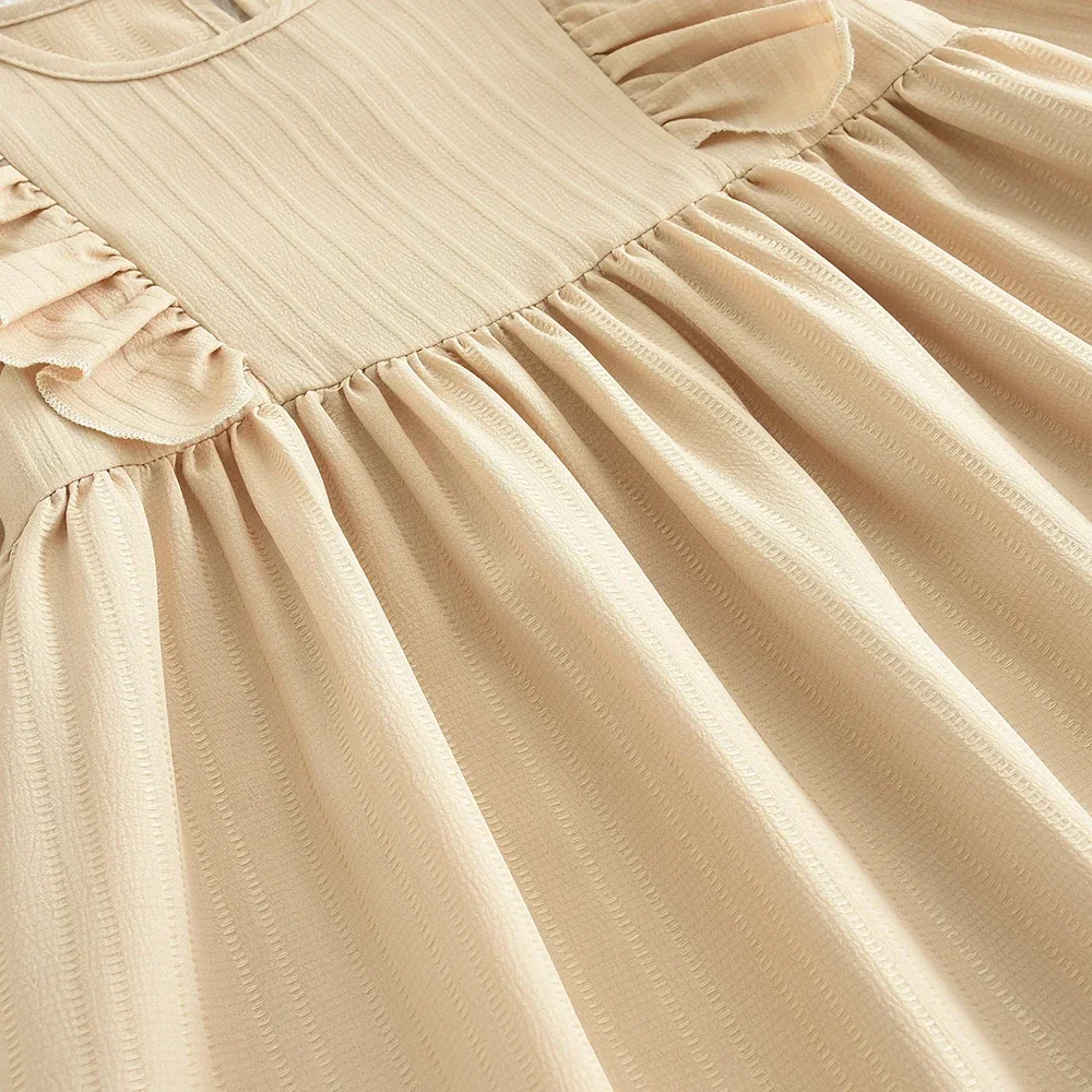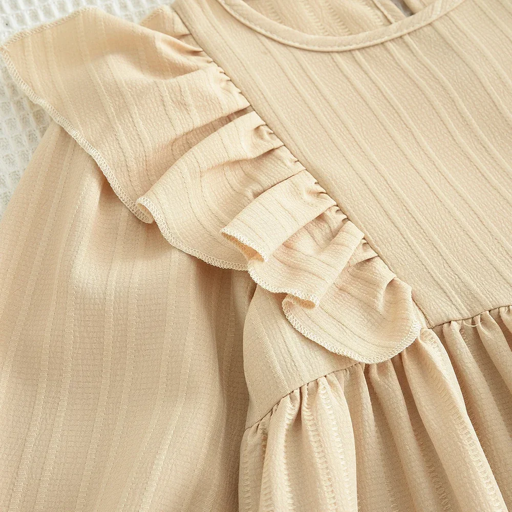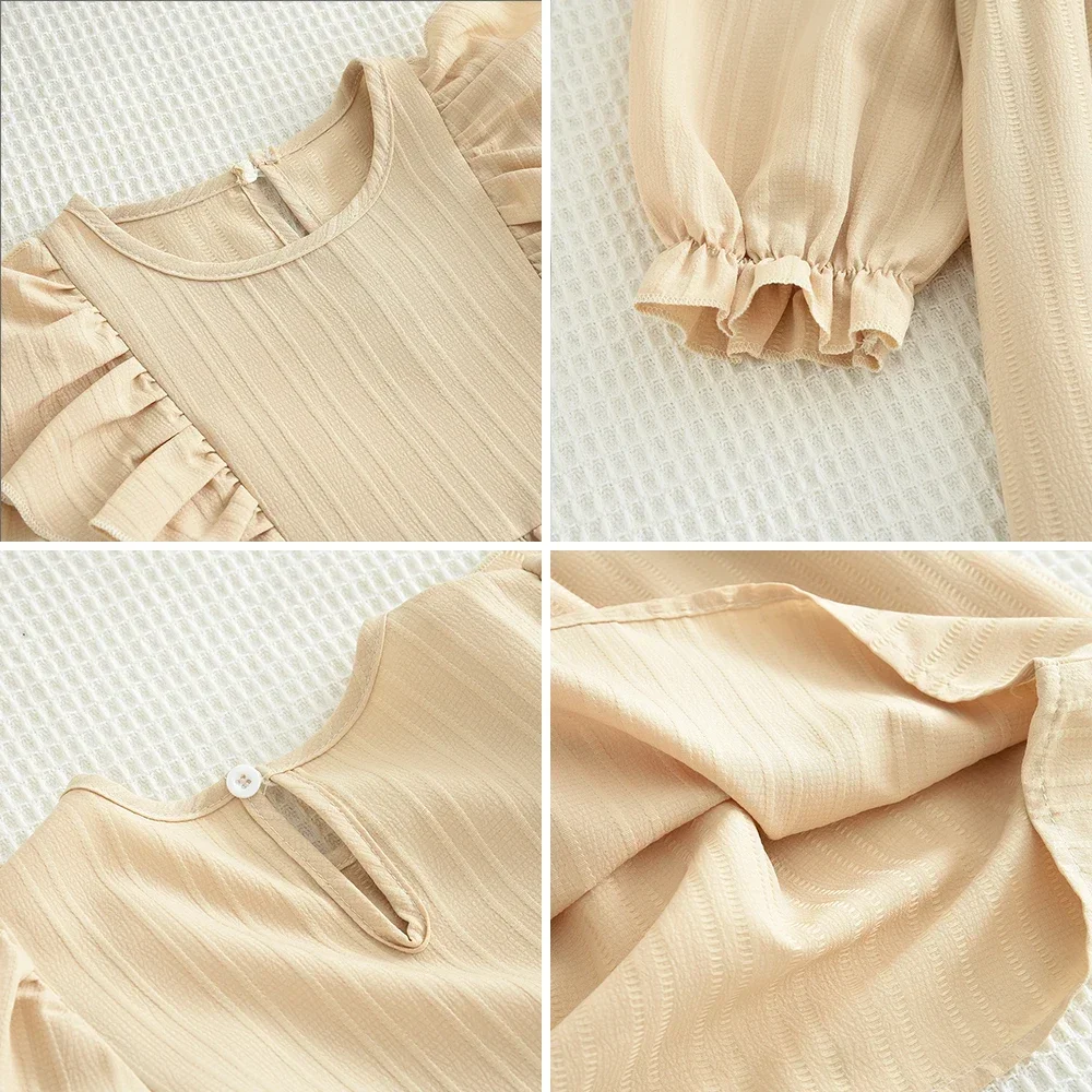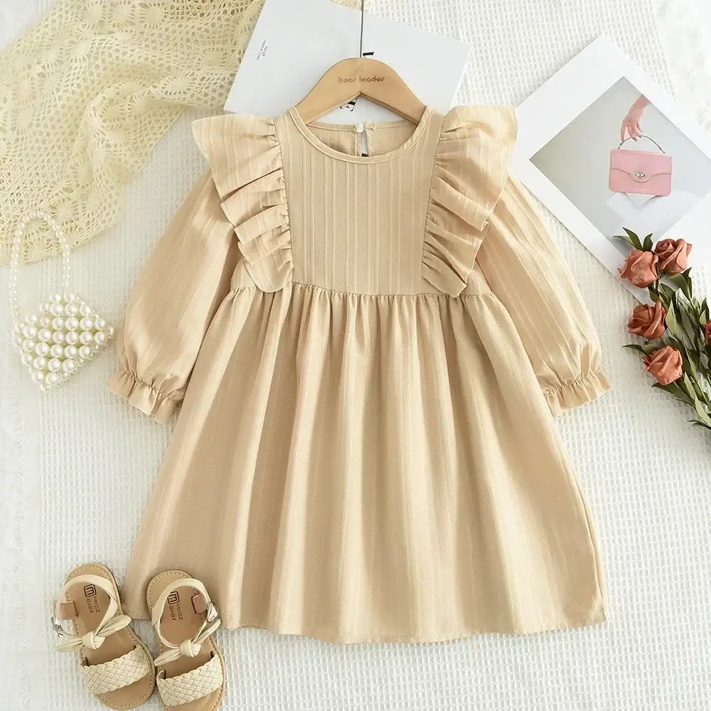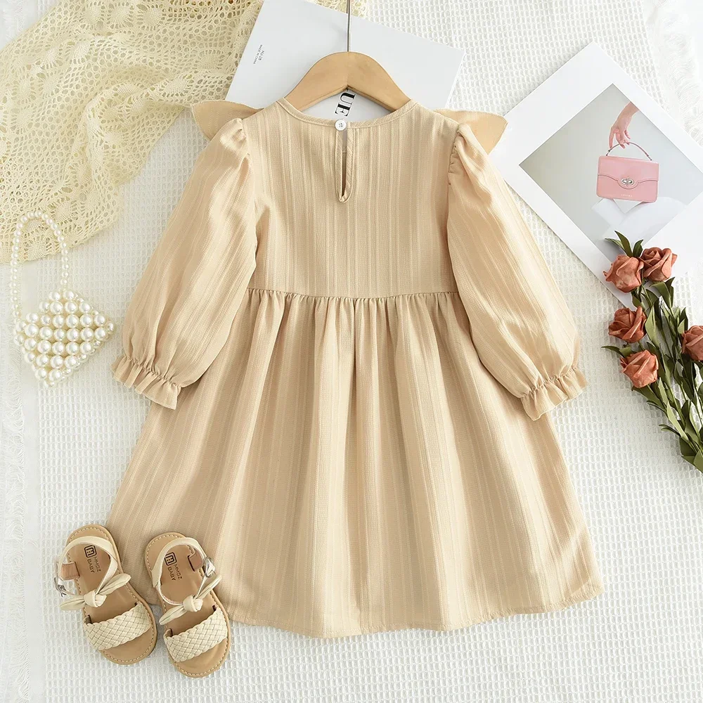Plain Casual Girls Dress Autumn Long Sleeved Pleated Kids Dresses for Girls Pink Clothes Fashionable New Children's Clothing