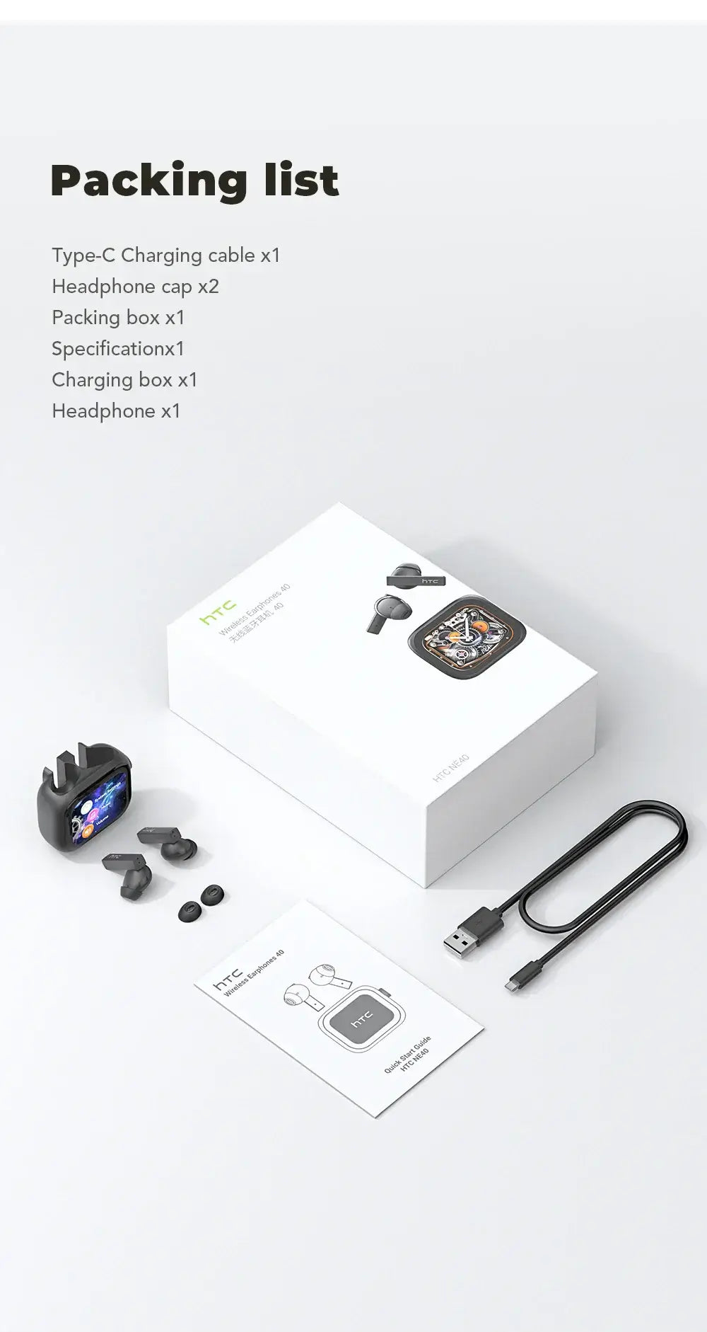 [Ultra HD Screen] HTC NE40 Earphones Bluetooth V6 TWS Sports Wireless Headphones AI Translator Earbud In-Ear Noise Reduction Mic