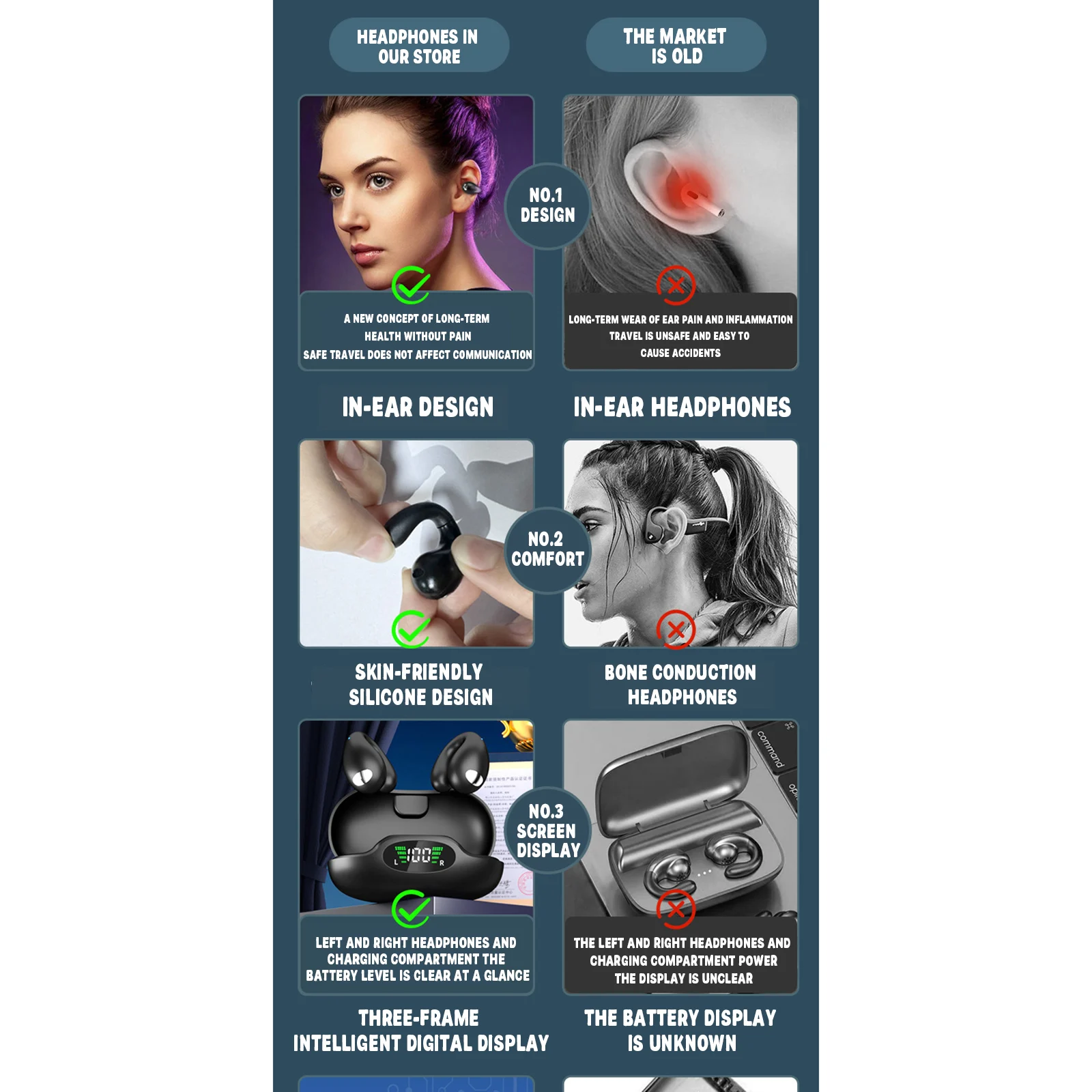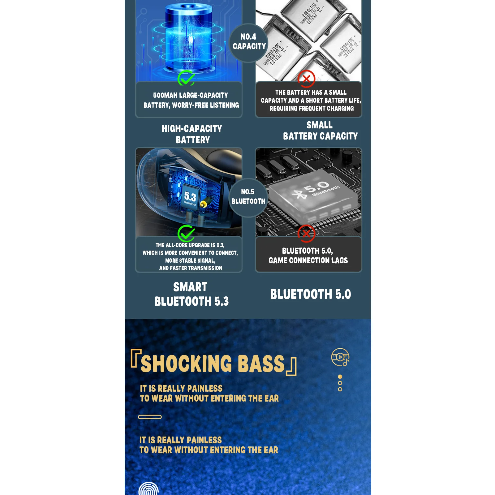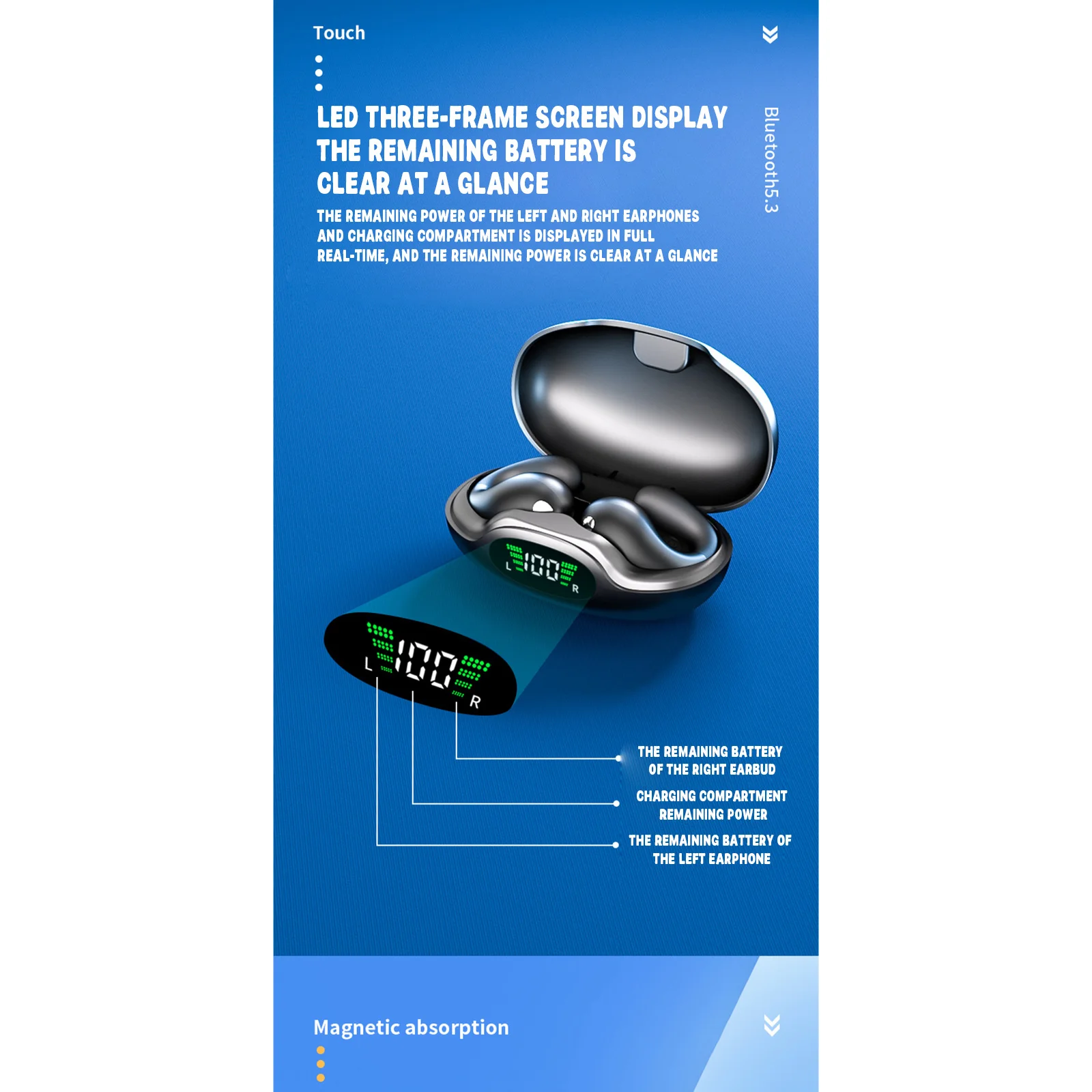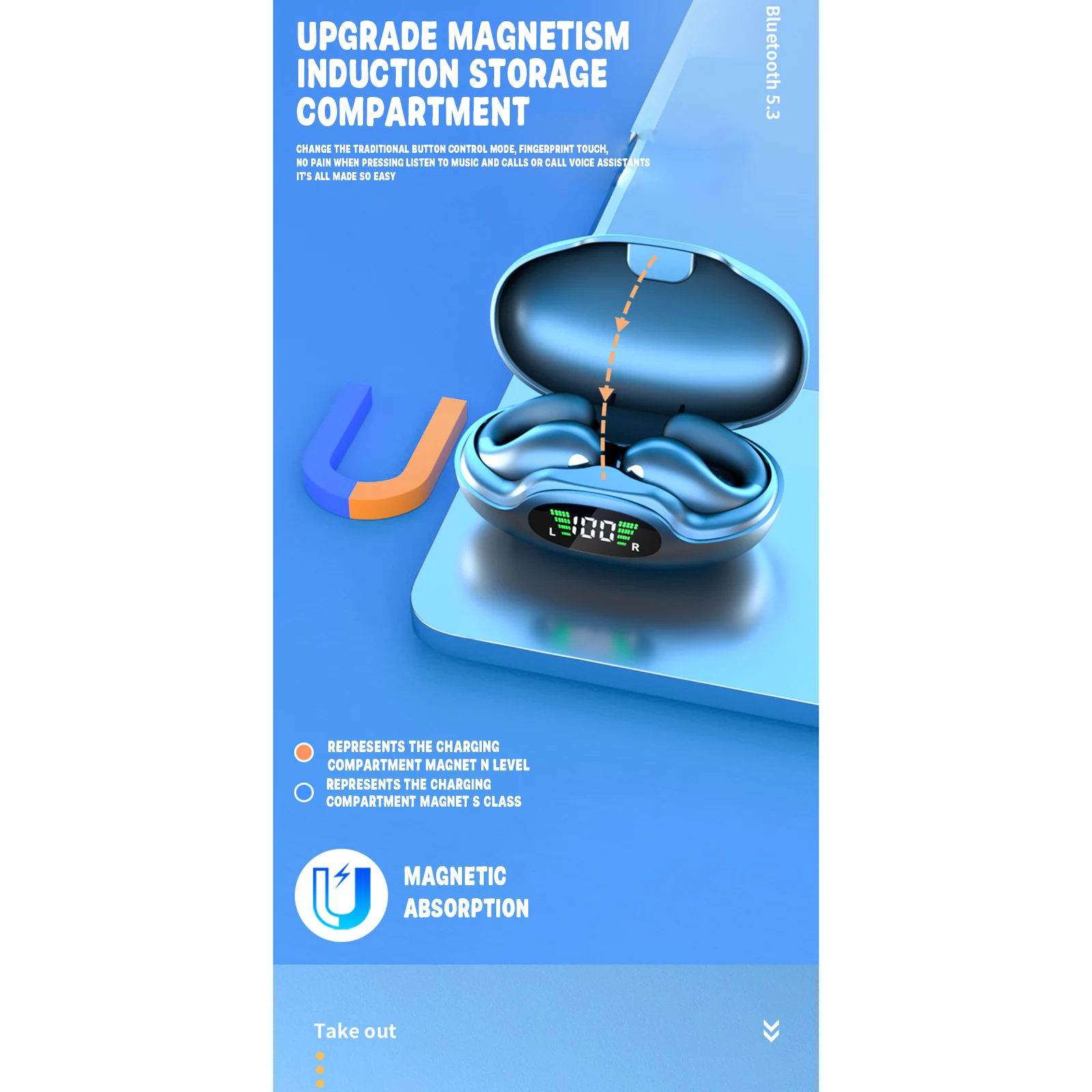 - With advanced Bluetooth 5.3, these open ear headphones wireless Bluetooth deliver faster connections, lower latency, and more stable performance. The smart auto-pairing feature activates instantly when you take the clip on ear buds out of the case, ensuring a seamless and reliable experience.