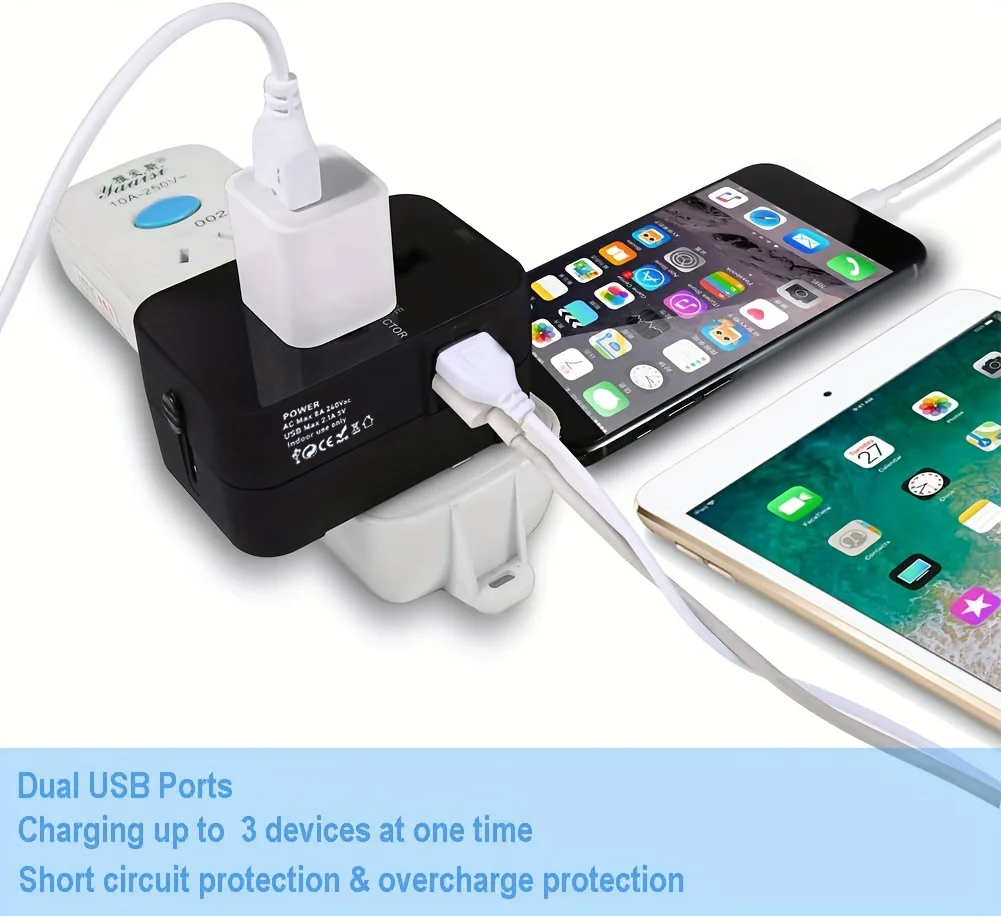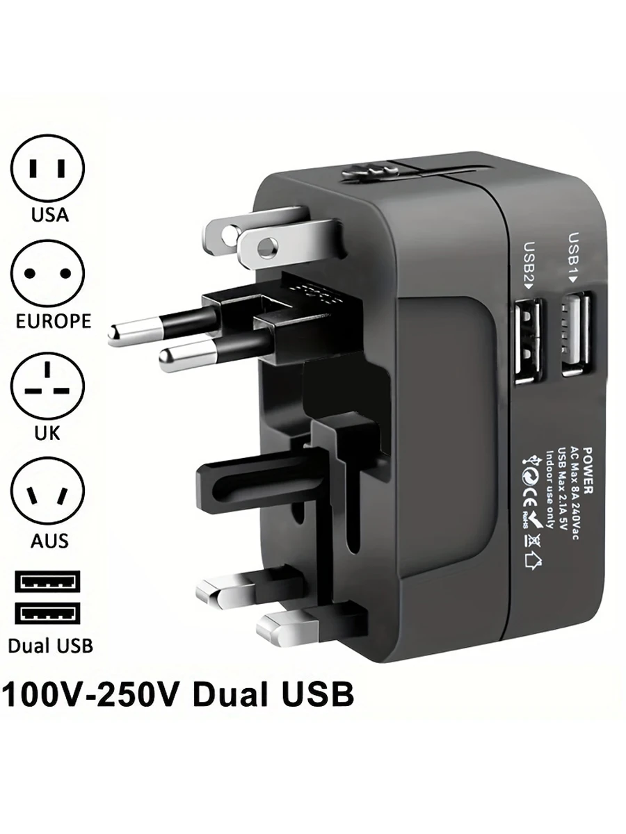 Universal AC power adapter with dual USB charging ports, universal travel plugs and sockets, EU-US AC power adapter
