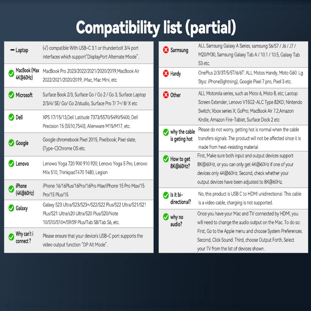 USB C to HDMI Cable 8K@60Hz 4K@120Hz Type C to HDMI-Compatible HDTV Cable for TV Converter MacBook Air iPad USB-C HDMI Adapter
