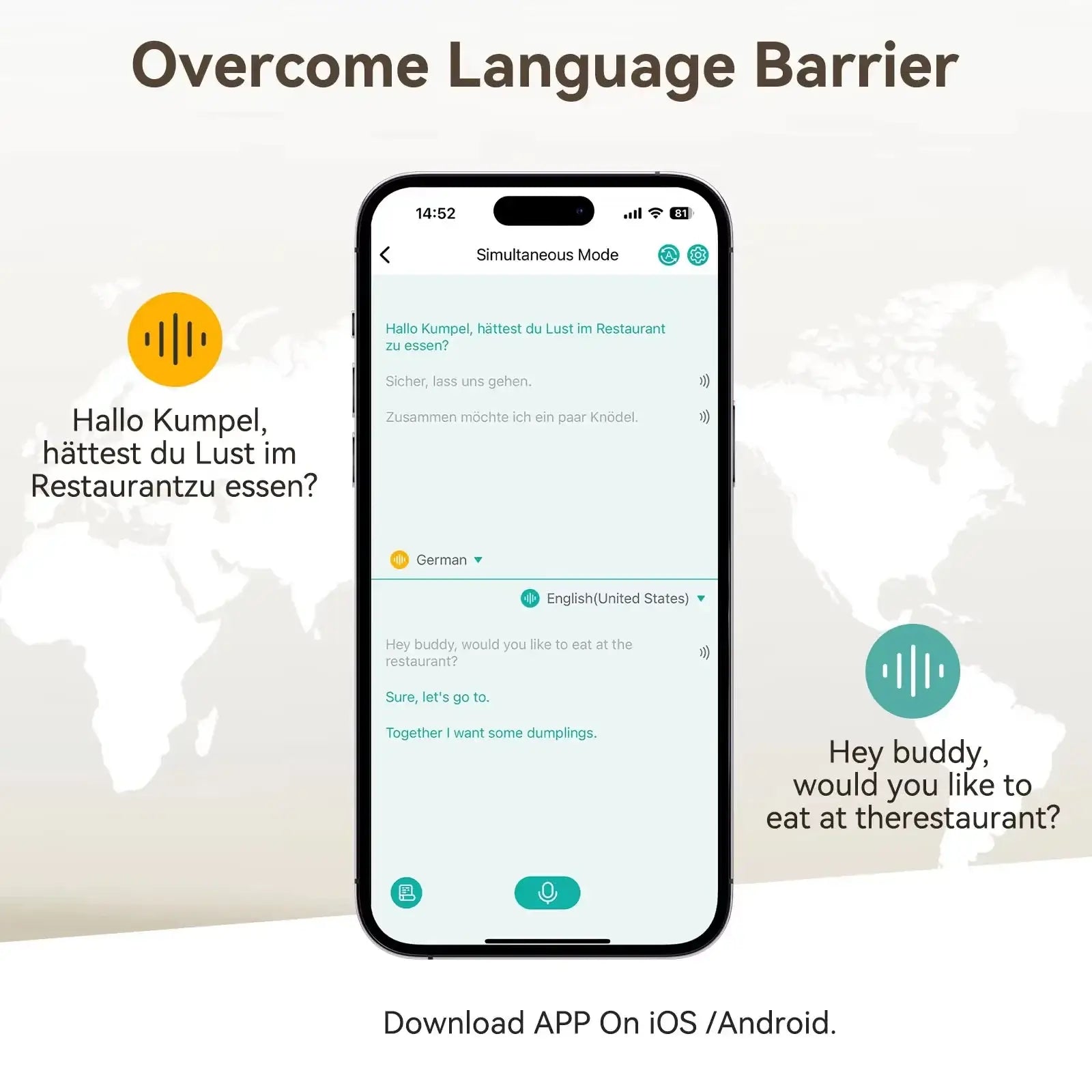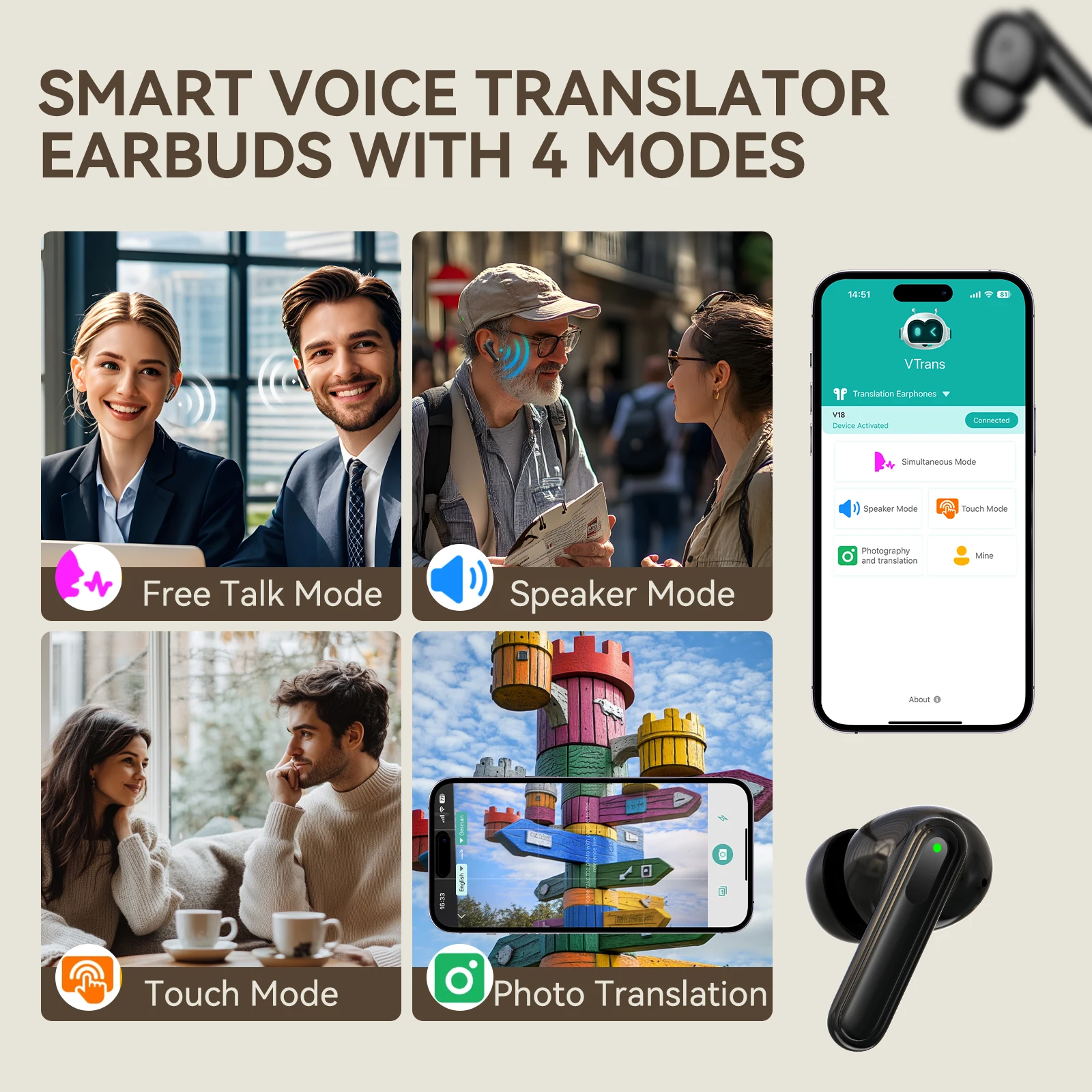 V20 Wireless Translator Earbuds 150-Language Two-way Real-time Translation Instant Voice Translator for Travel Business Learning