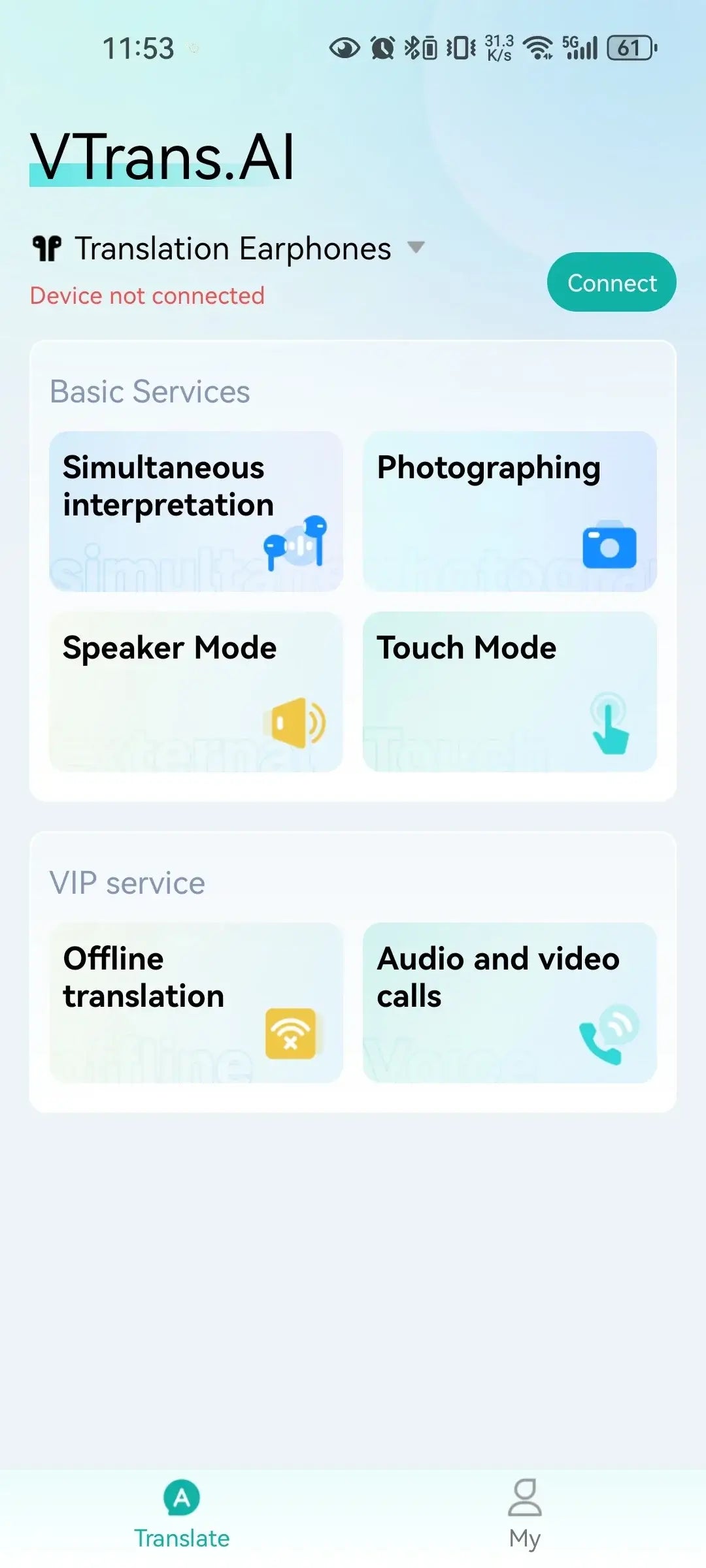 then return to the VTrans main interface after paired. (Please ignore this step if you have connected this earphones before).