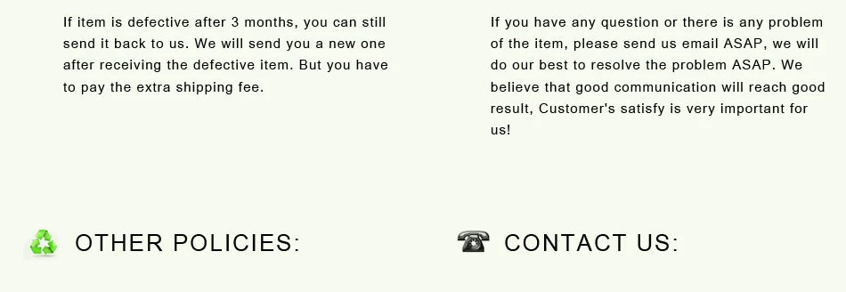 - No hassle returns, 30 days return