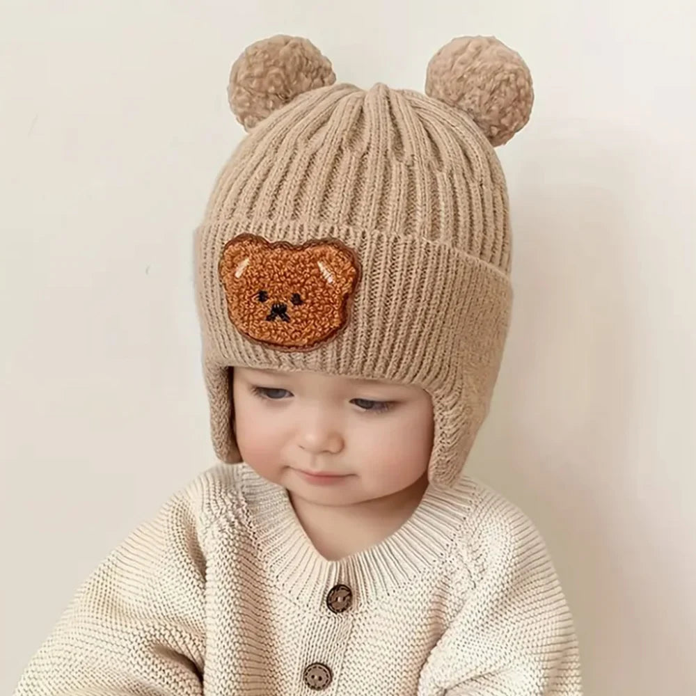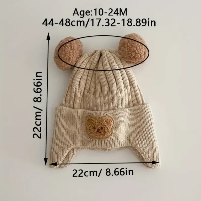 Winter Baby Beanie Cartoon Bear Ear Protection Knitted Hat, Suitable for Toddling Boys and Girls